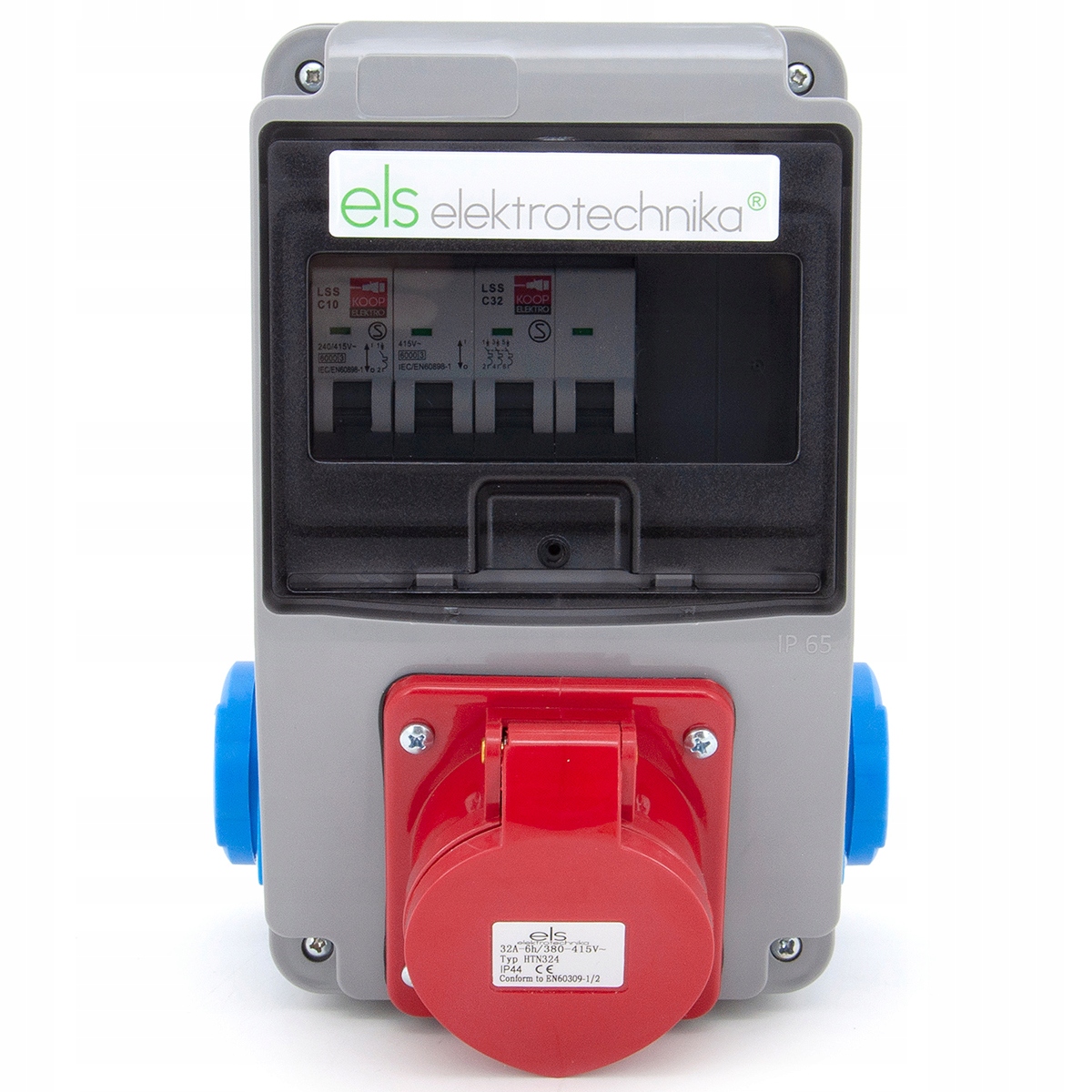 ✅ 1 розетка 32А 4P 400ВIP44, полностью распаянная и защищенная C32 3P.