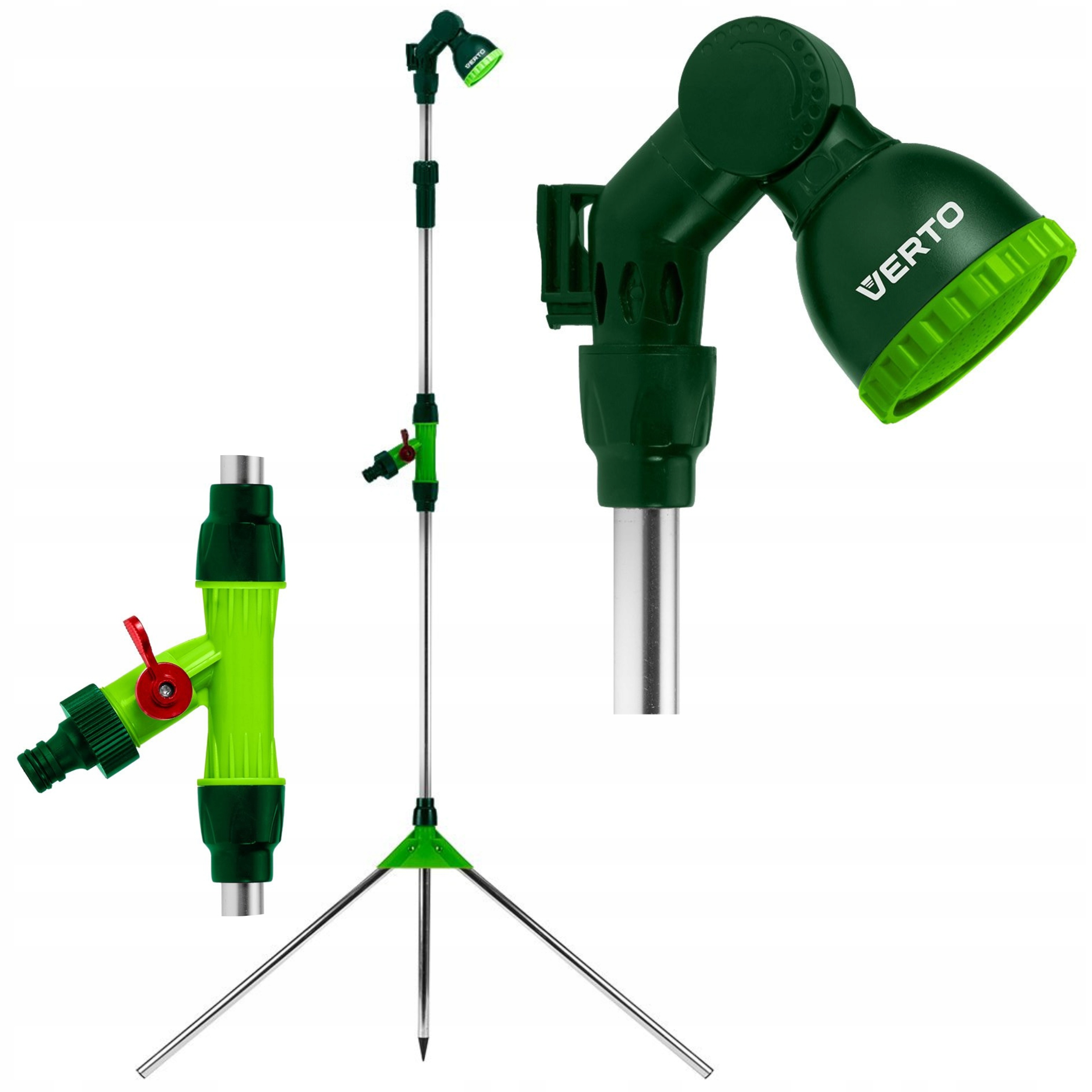 Verto Garden Shower 15G685 имеет блокаду потока воды с клапаном и универсальным соединением, чтобы соединить шланг, заканчивающуюся универсальным разъемом. Стабильная алюминиевая конструкция и элементы, изготовленные из ABS и PP. Садовый душ имеет общую регулировку высоты в диапазоне 160 - 230 см. Рабочий штатив имеет шампур, который позволяет стабилизацию в земле. Благодаря подвижной головке за 180 градусов можно использовать функцию душа в любой плоскости.