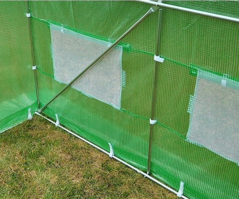 Покрытие туннеля изготовлено из полиэтиленовой пленки с коэффициентом UV=4, благодаря чему сельскохозяйственные культуры будут иметь соответствующий микроклимат и в то же время создают изолирующую функцию. В боковых стенах имеются окна с противомоскитными сетками, благодаря которым можноконтролировать температуру и циркуляцию воздуха и одновременно защитить от насекомых. Каждая стена расширена, образуя специальный фартук, который можно засыпать песком, чтобы избежать продувания. Благодаря встроенной полипропиленовой сетке пленка устойчива к повреждениям и разрывам.