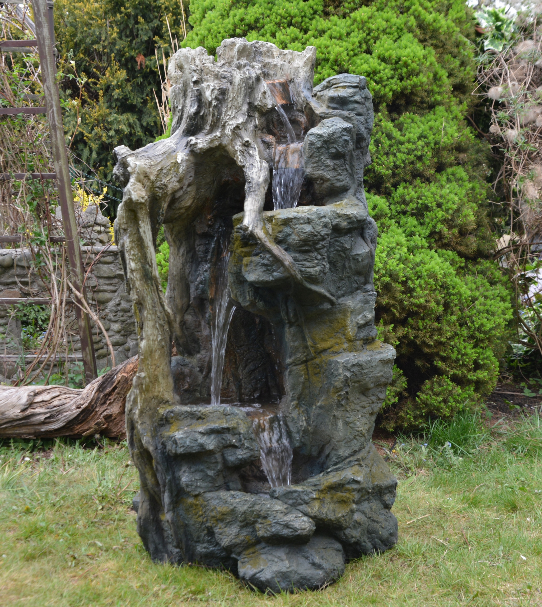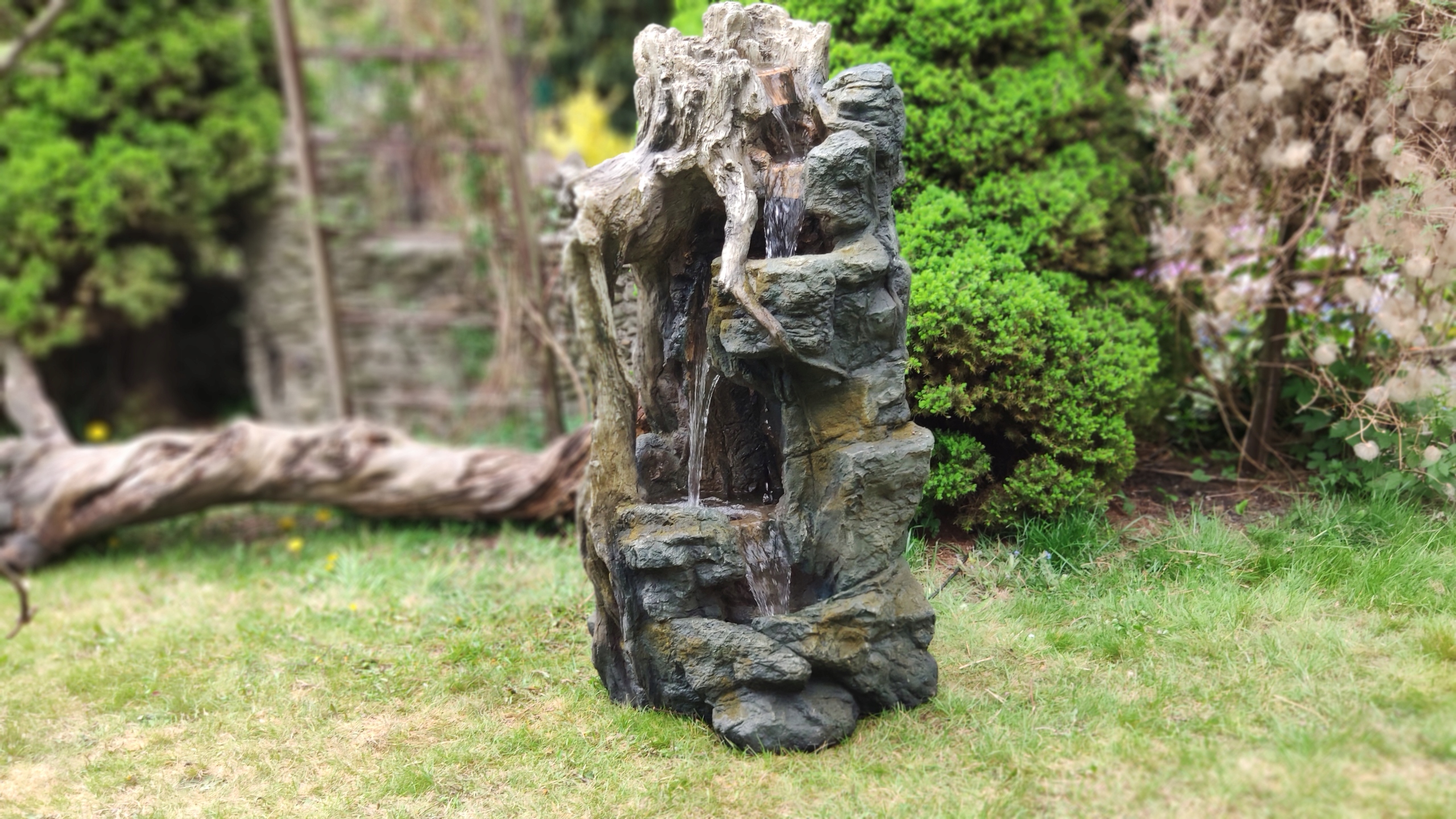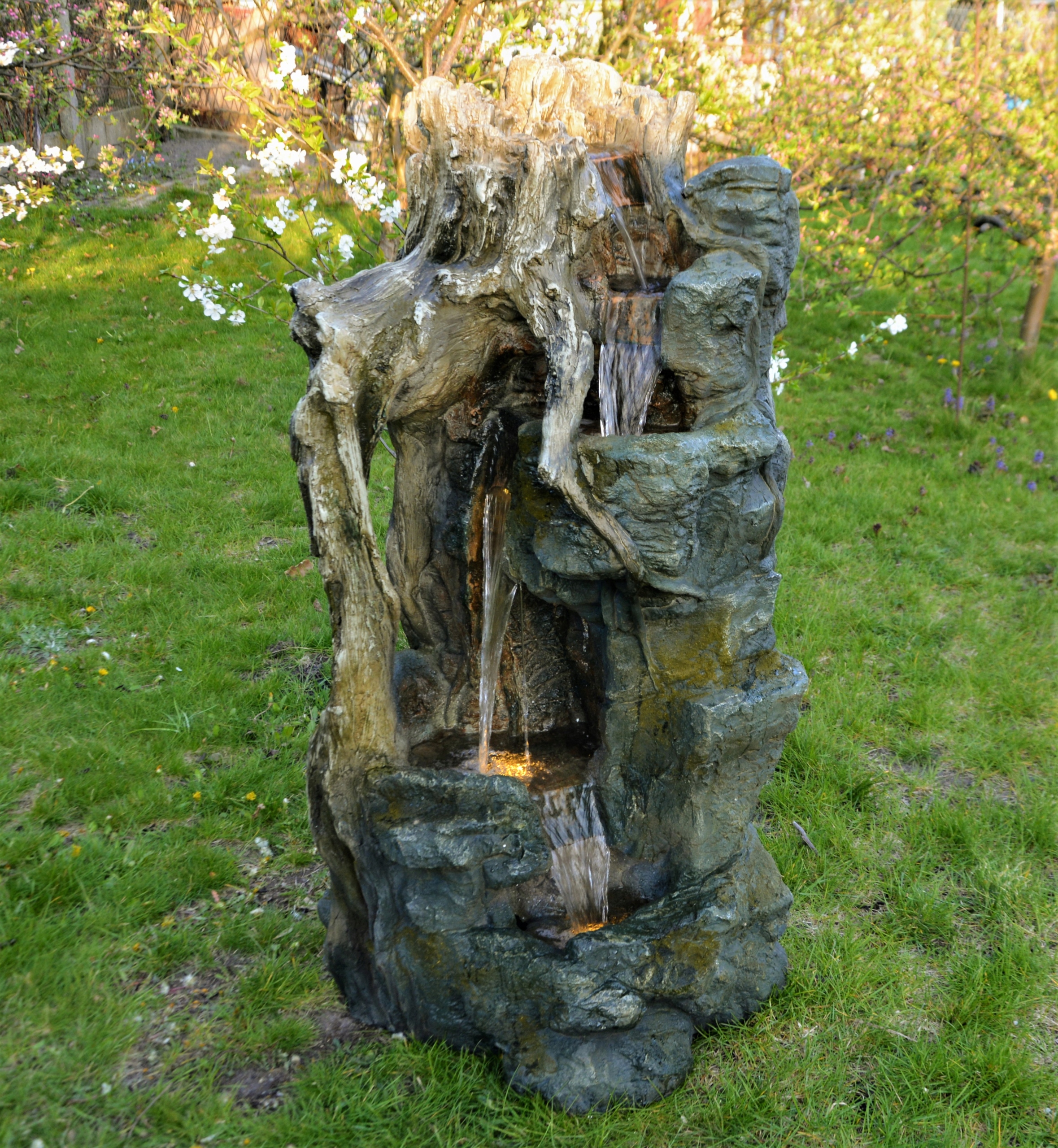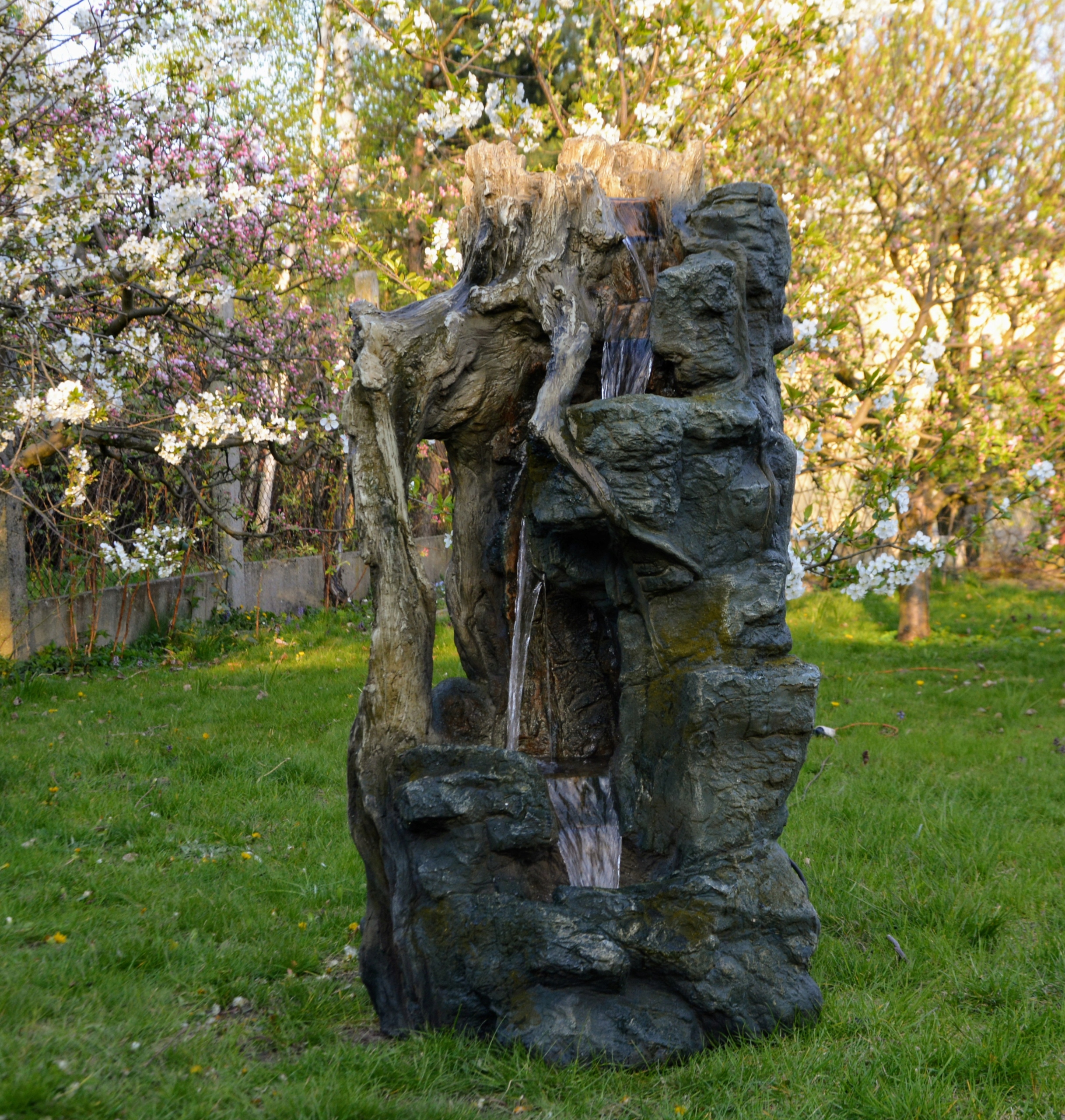Интересная форма и безупречный внешний вид – не единственные особенности нашего следующего предложения для интересного сада или террасы. Фонтан в стиле дерева с каменными элементами и серовато-коричневыми плафонами прекрасно впишется летом в естественную зелень садов или на фоне террасы.