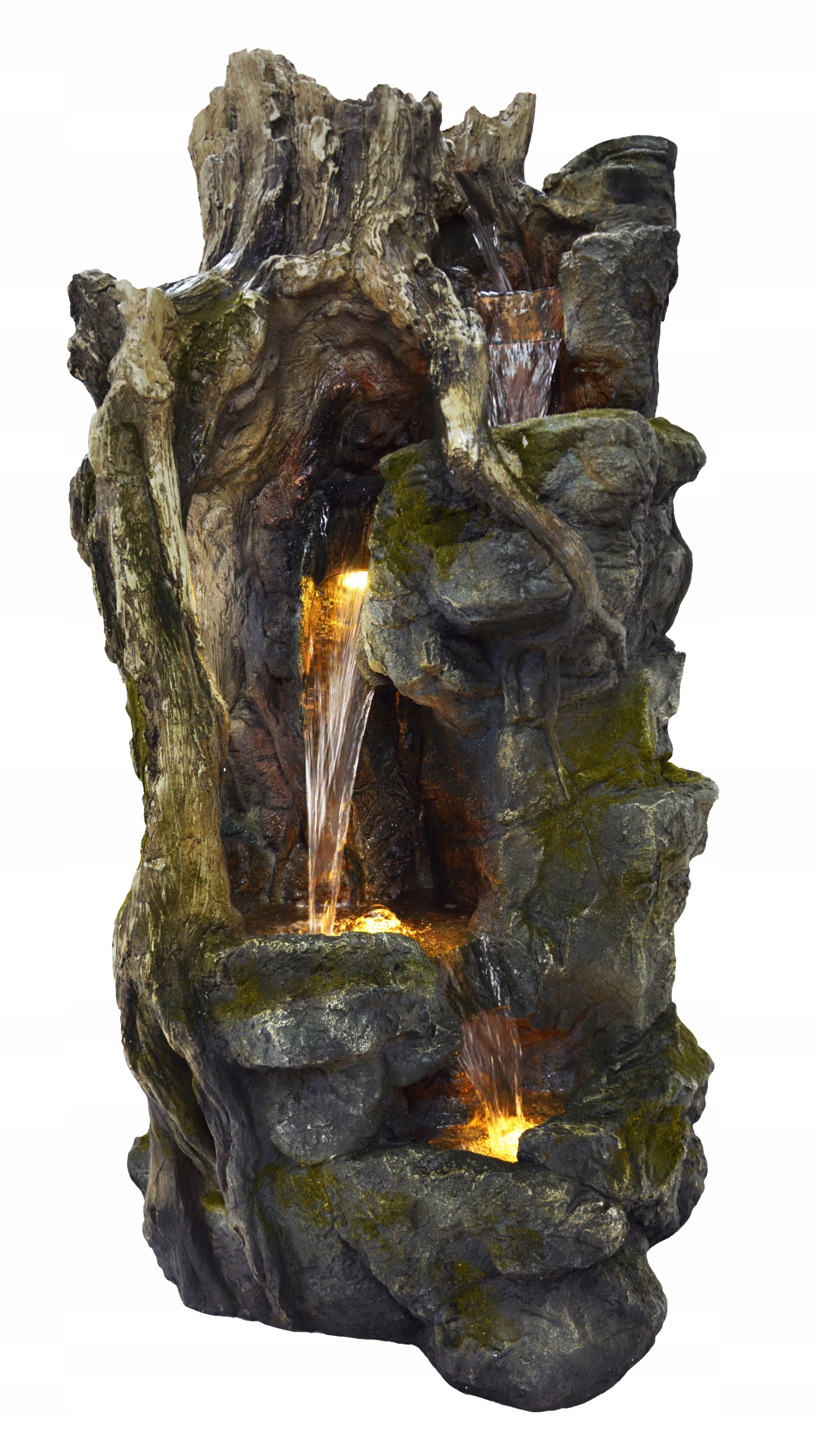 Местно нанесенный мох и точная роспись подчеркивают его очарование. Форма спроектирована таким образом, что сбоку имеется свисающий корень срезанного ствола, что придает фонтану естественный вид.