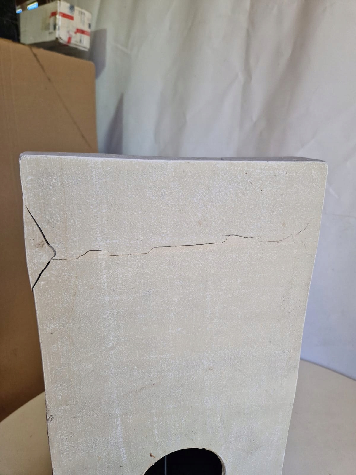 Трещина на задней стенке, образовавшаяся при транспортировке, видна на фотографиях. Ремонтировать самостоятельно.