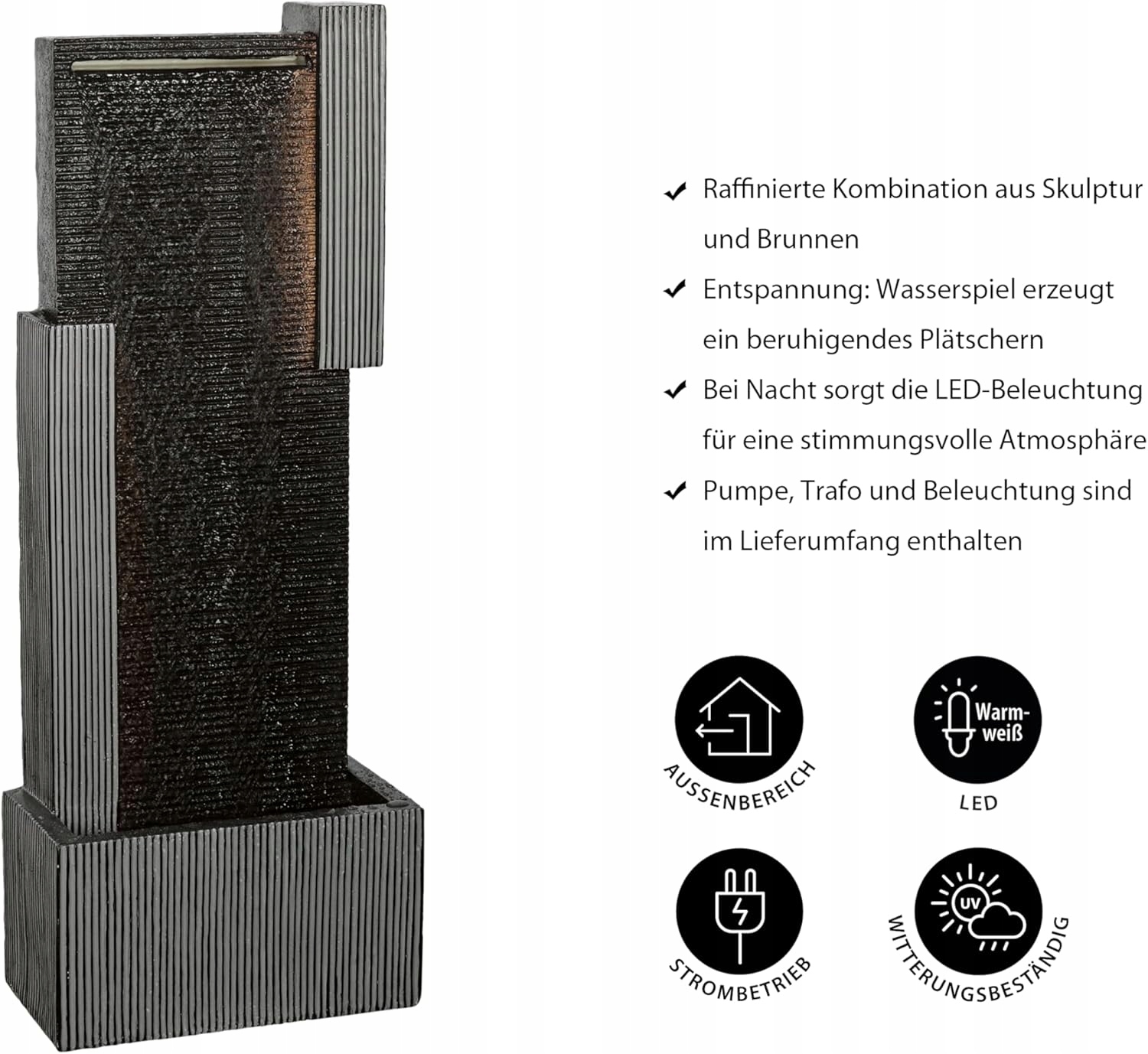 Садовый фонтан Dehner Minerva со светодиодной подсветкой, черный, 100×38×23 см ДЕФЕКТ