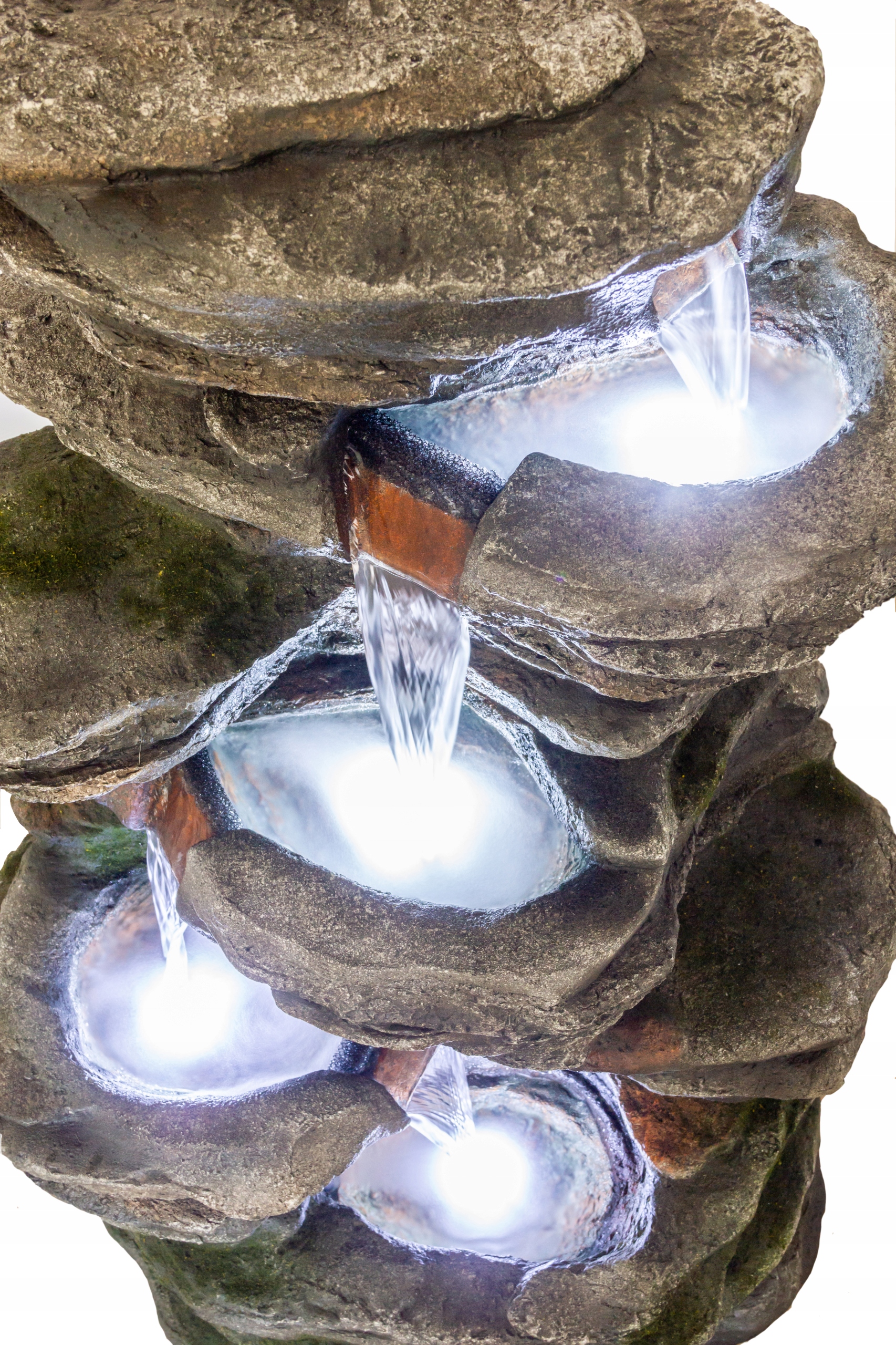 Каждый уровень каскада оснащен светодиодной подсветкой, которая придает фонтану тонкое свечение в темное время суток и подчеркивает красоту струящейся воды. Эффект не только декоративный, но и расслабляющий – идеален для вечернего отдыха