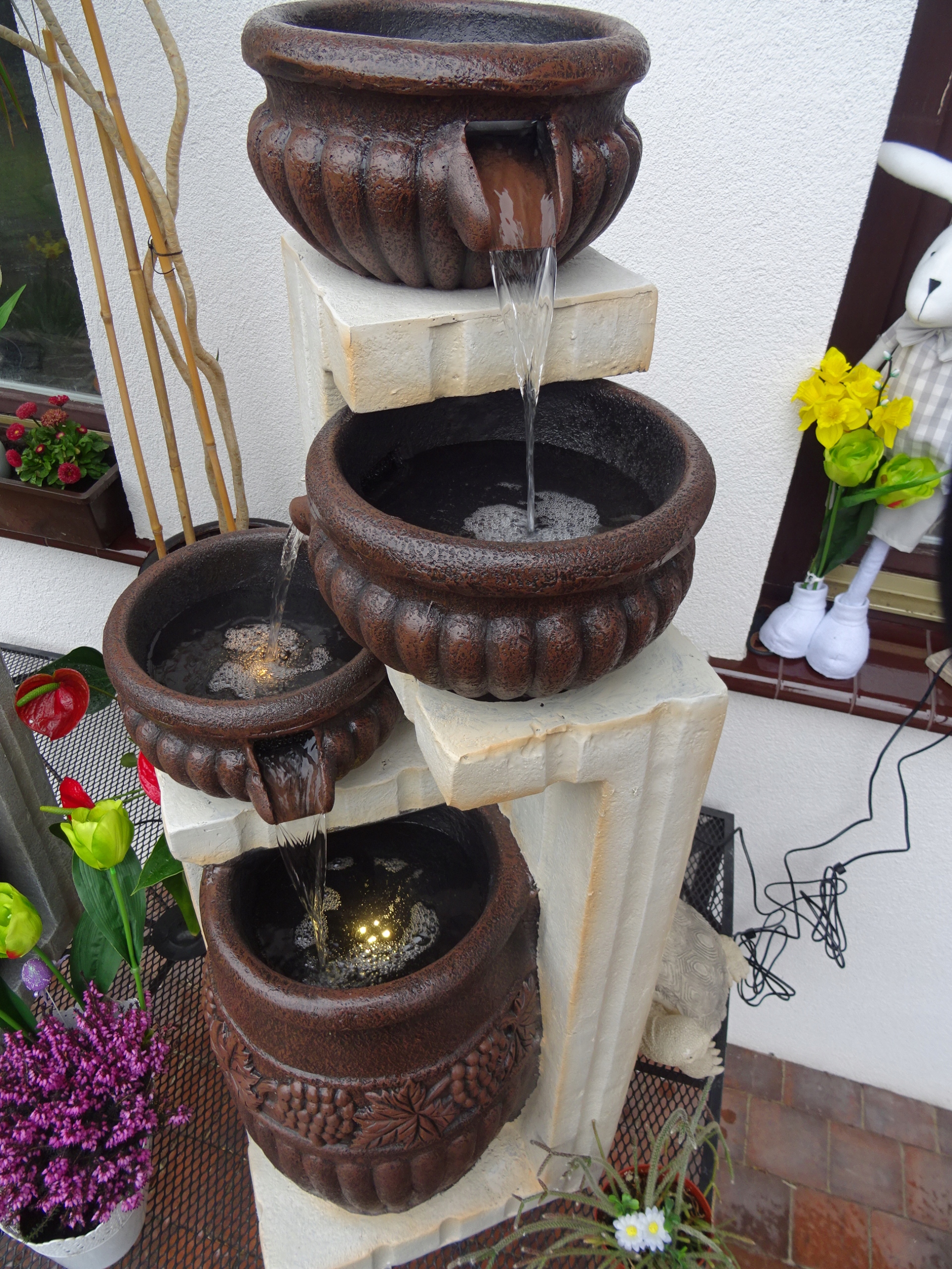 - Фонтан в сборе - установлено светодиодное освещение, водяной насос, питание 230В/12В
