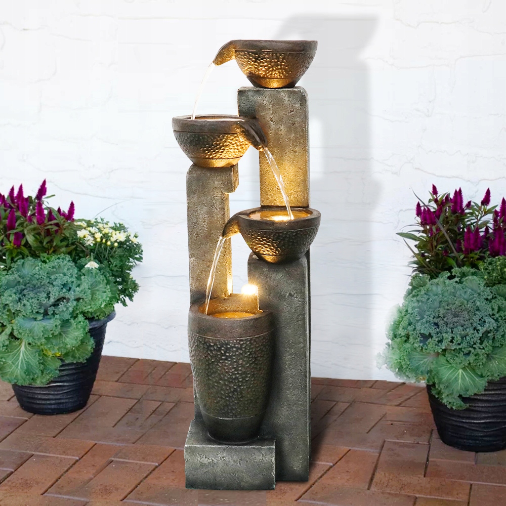 Садовый фонтан со светодиодным освещением, свиные горшки, полирезин, 33*33*102