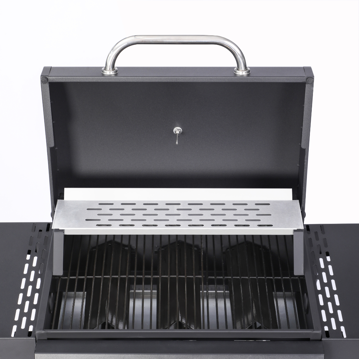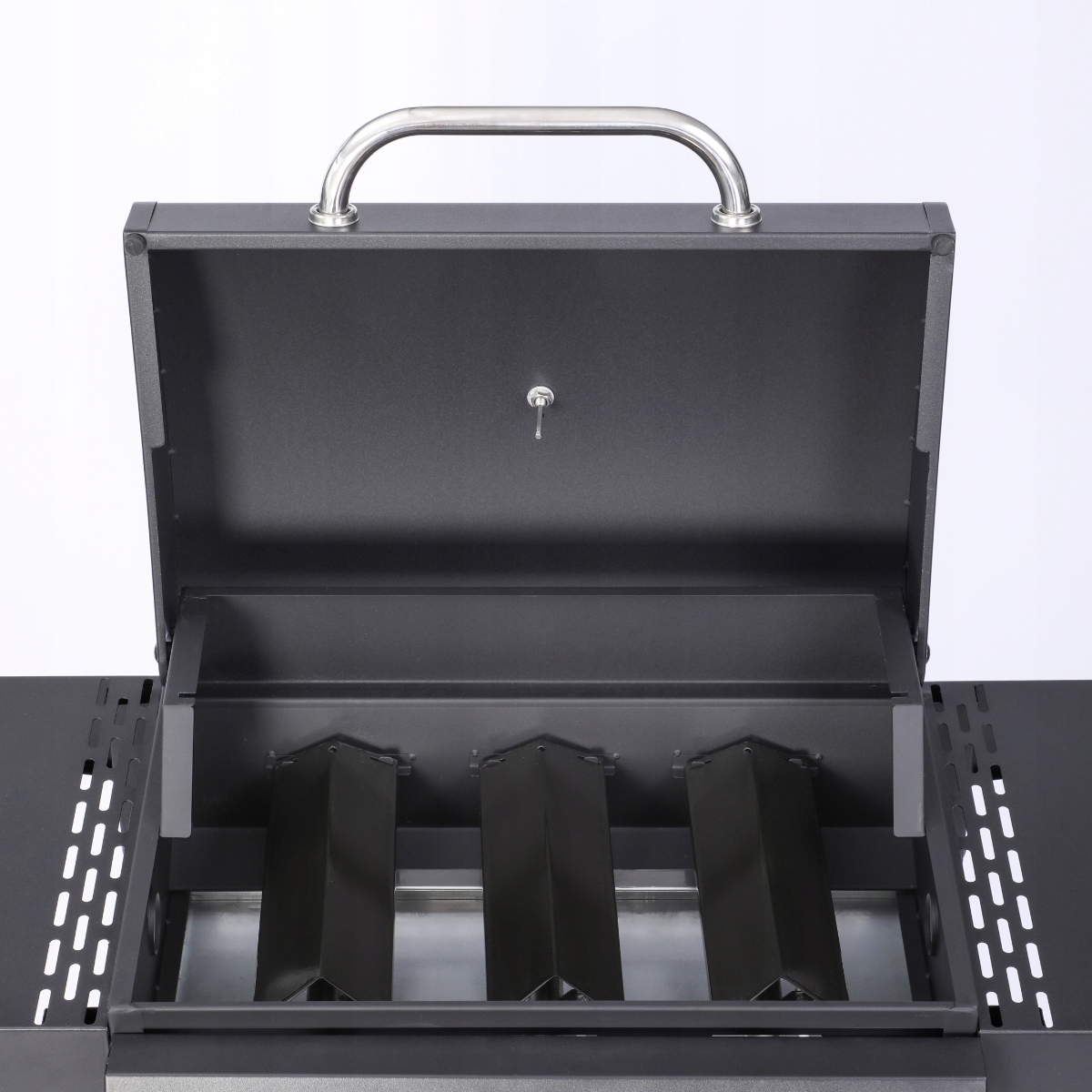 - Три горелки из нержавеющей стали для эффективной прямой и косвенной очистки на гриле