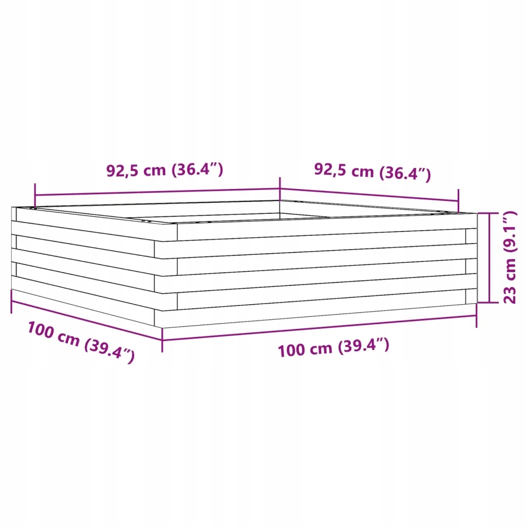 Садовий горщик для квітів 100х100х23 см, масив сосни