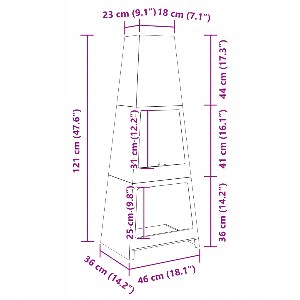 - Структура башни: этот садовый камин имеет высокую структуру, которая эффективно направляет дым вверх, вдали от гостей, обеспечивая удобную и без дыму среды. очаг. Это отличное место для хранения поляных, древесного угля и дерева, которое помогает поддерживать порядок в окружающей среде камина