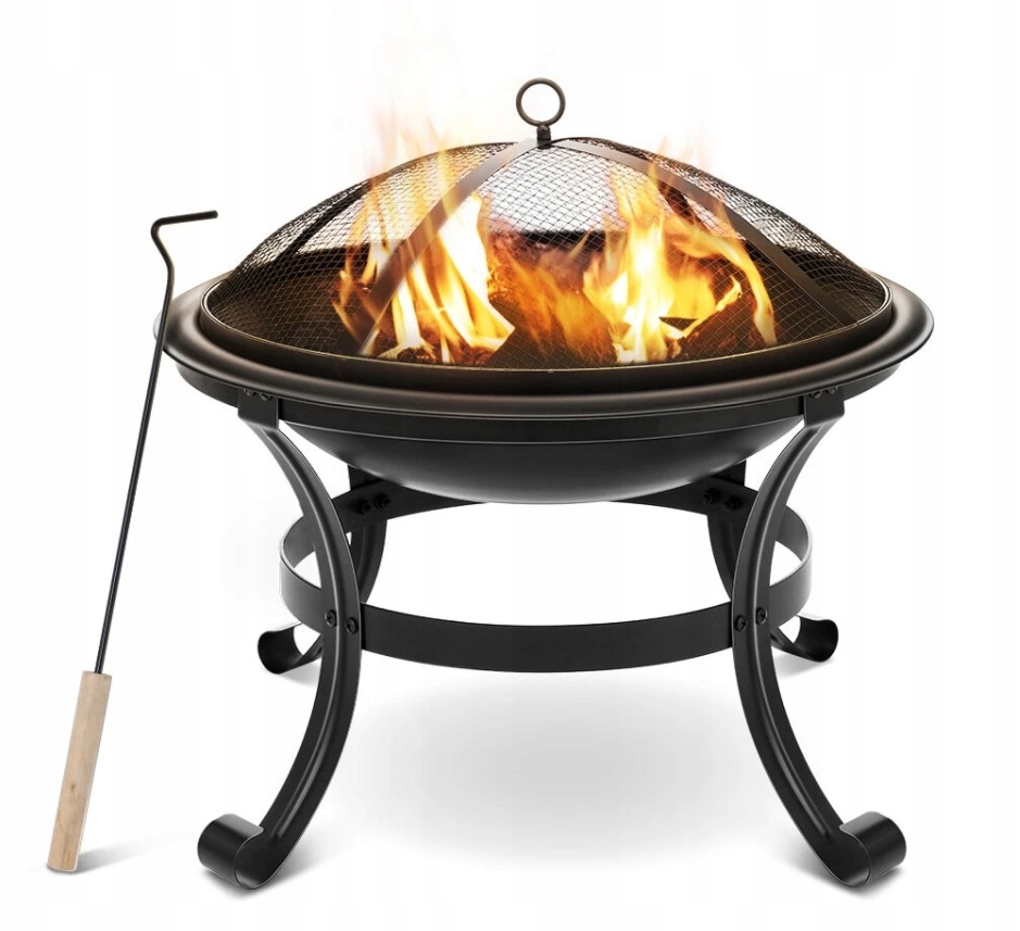 -БЕЗОПАСНОСТЬ: сетка предотвращает разлет искр, углей и мусора, а кочерга с деревянной ручкой позволяет безопасно переносить дрова или древесный уголь. Решетка позволяет притоку воздуха поддерживать сильный огонь.