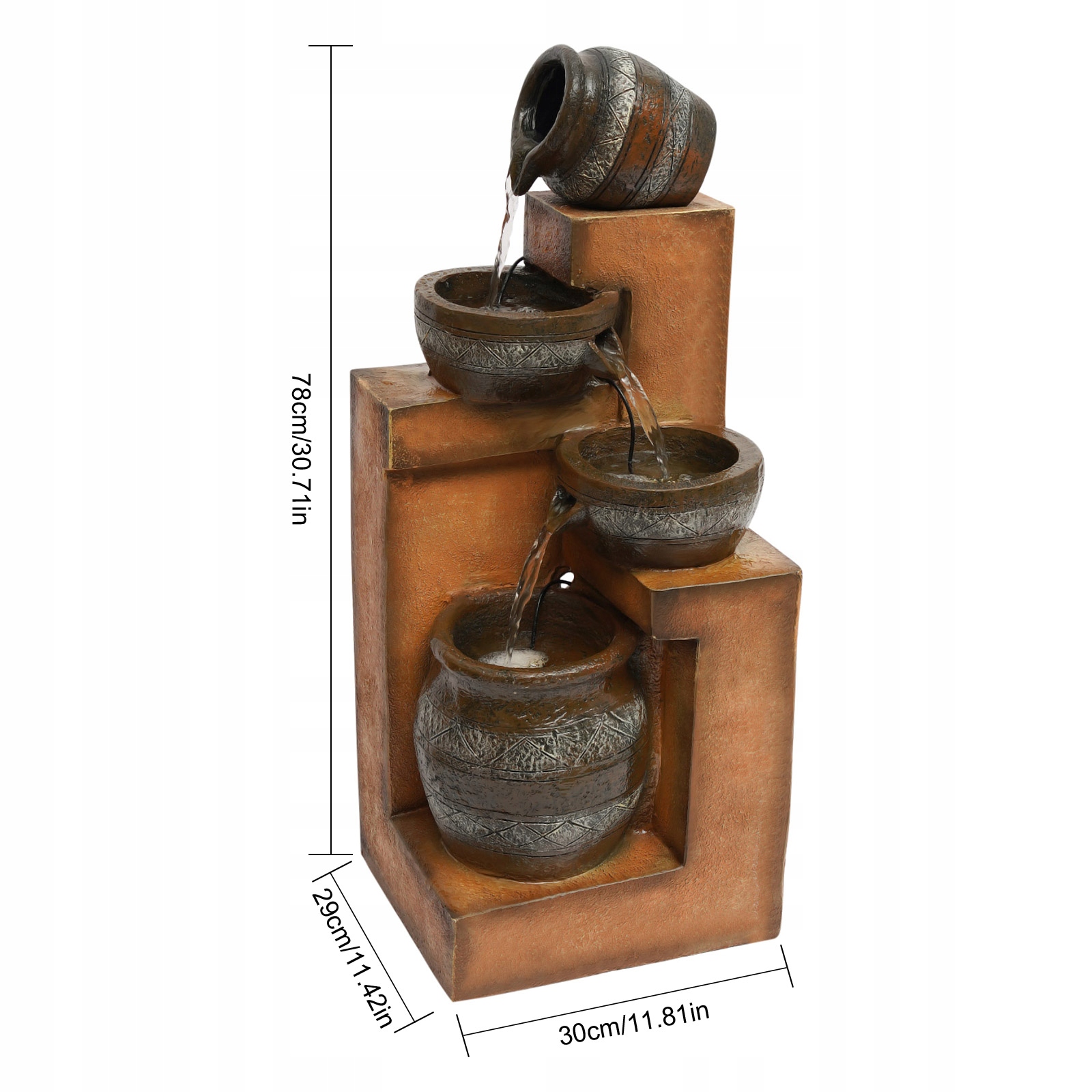 Уникальный дизайн: специальные полосы на чашах и кувшине делают фонтан более подходящим в качестве дополнения к любому домашний декор, что делает фонтан более элегантным и шикарным.
