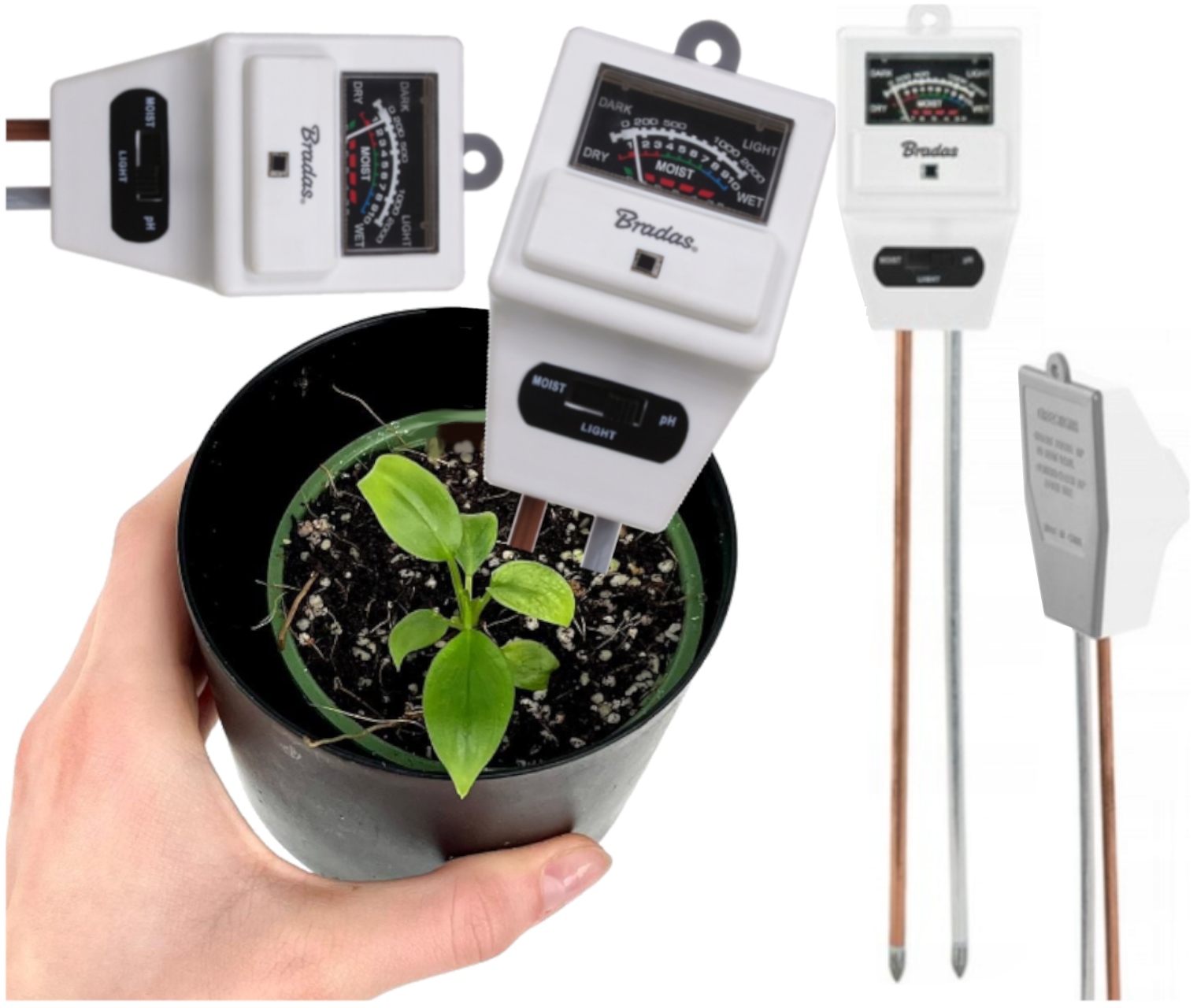 - Прибор, позволяющий измерять как кислотность и влажность почвы, так и интенсивность солнечного света.