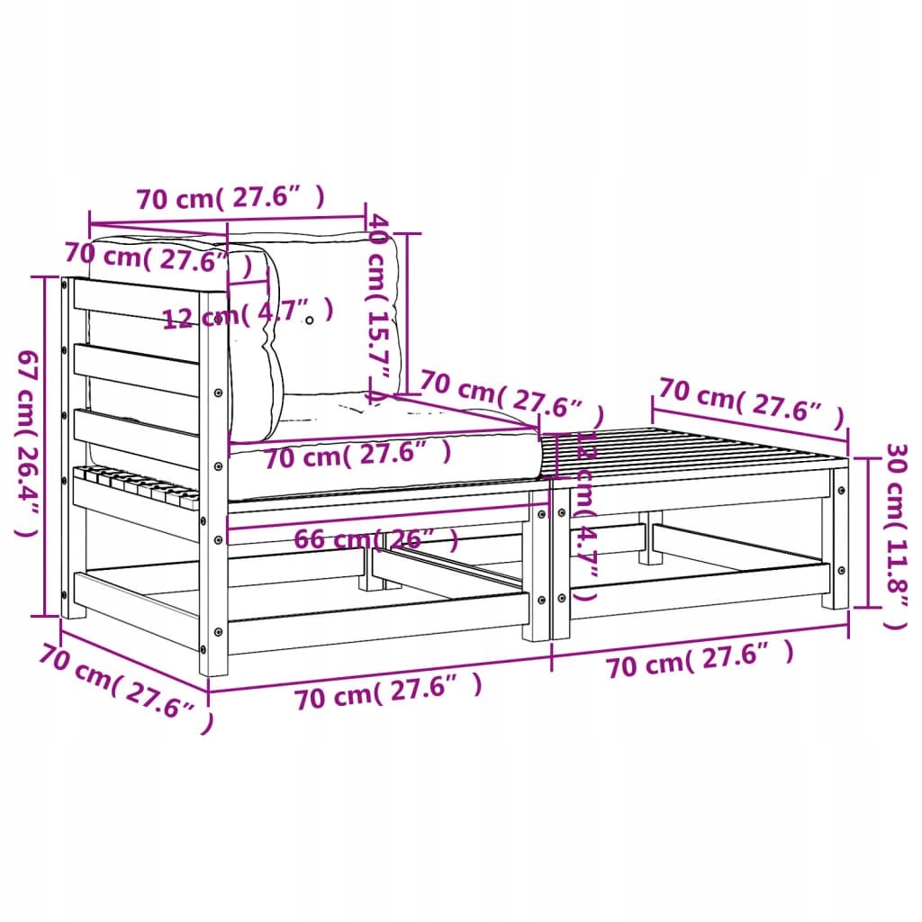 - Размеры подушки спинки: 70 х 40 х 12 см. (Д х Ш х В)