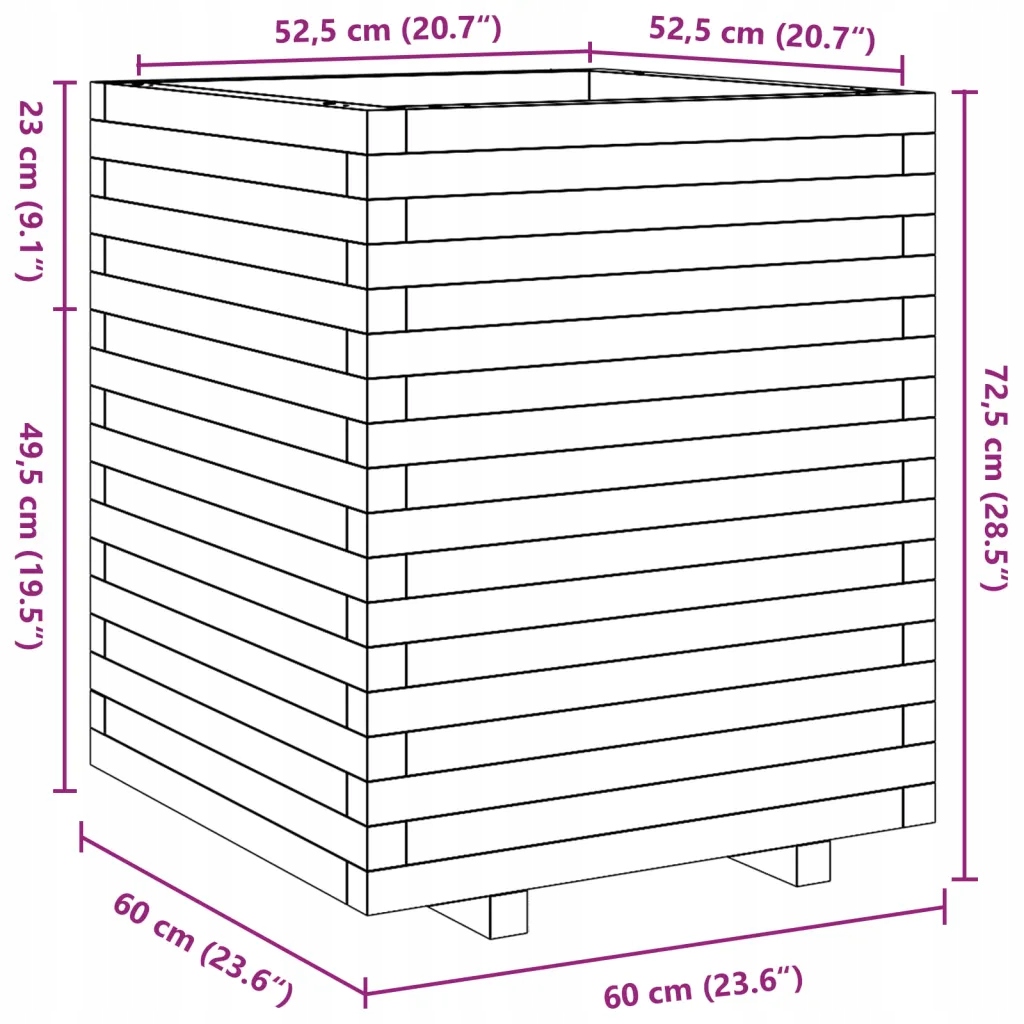 Горшок для цветов садовый, белый, 60x60x72,5 см, массив сосны