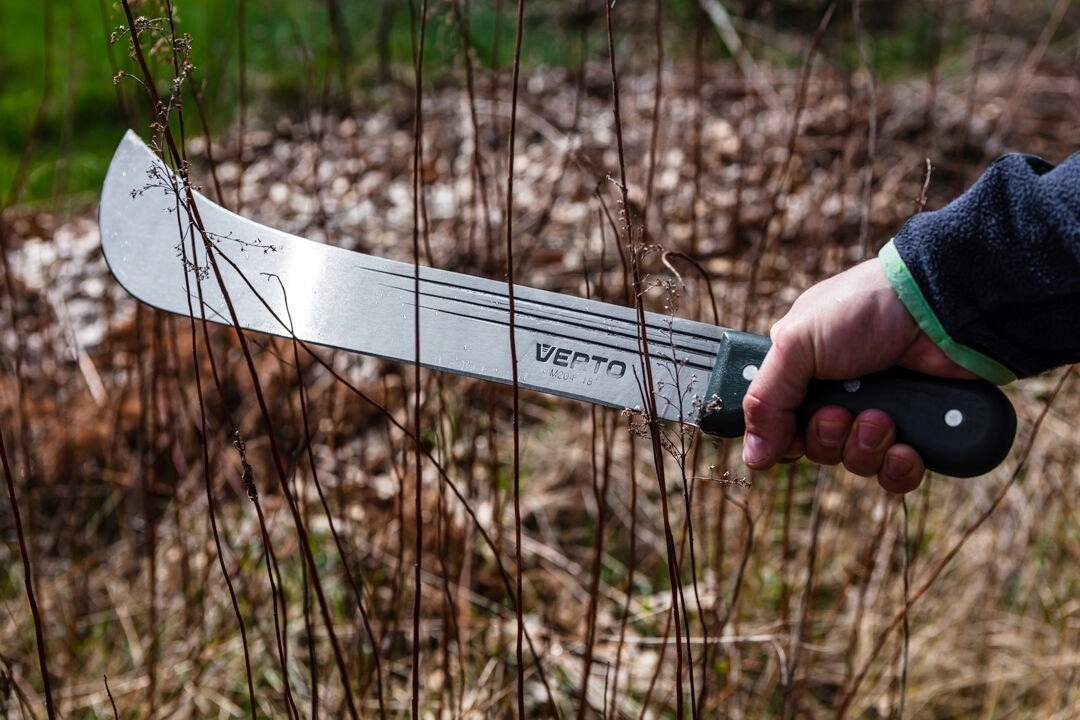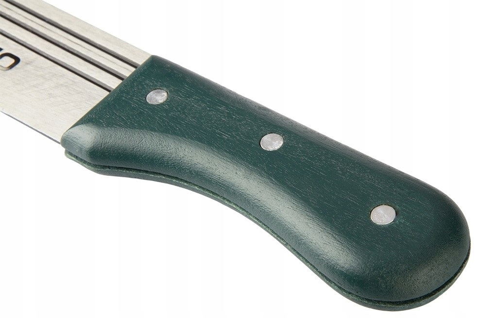 Таверна с общей длиной 455 мм от бренда садового бренда Verto. Мачете был изготовлен из постоянной, закаленной стали и деревянной ручки, прикрепленной к лезвию с заклепками. эргономическая ручка позволяет сделать удобное маневрирование. Специальная форма лезвия, в свою очередь, влияет на плавность движений и эффективность работы .