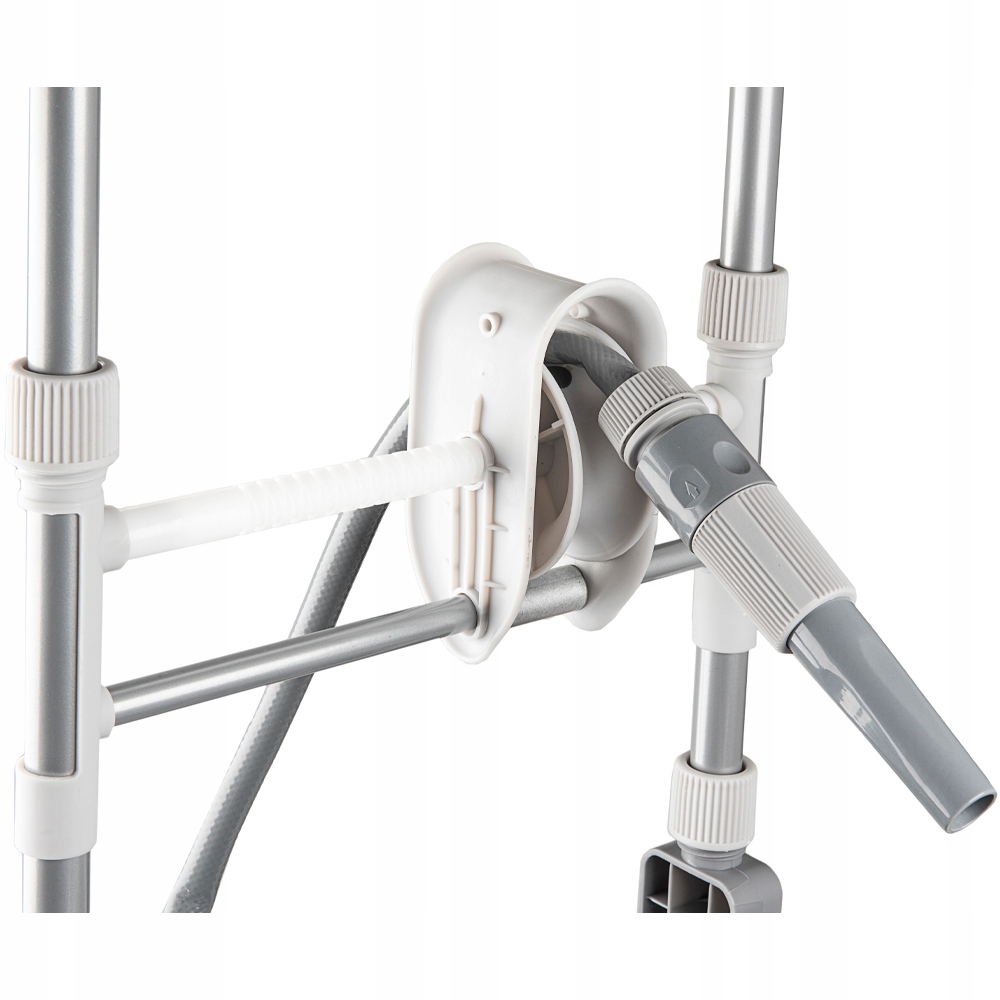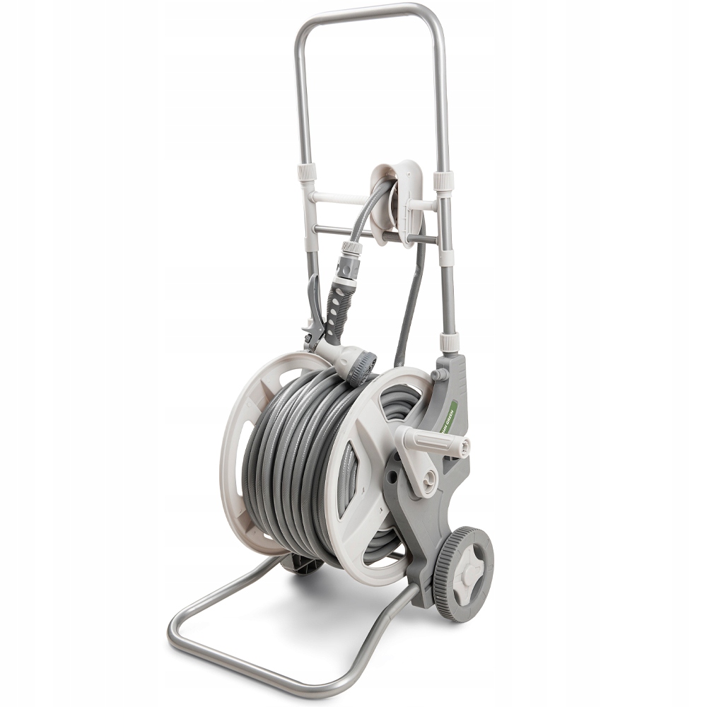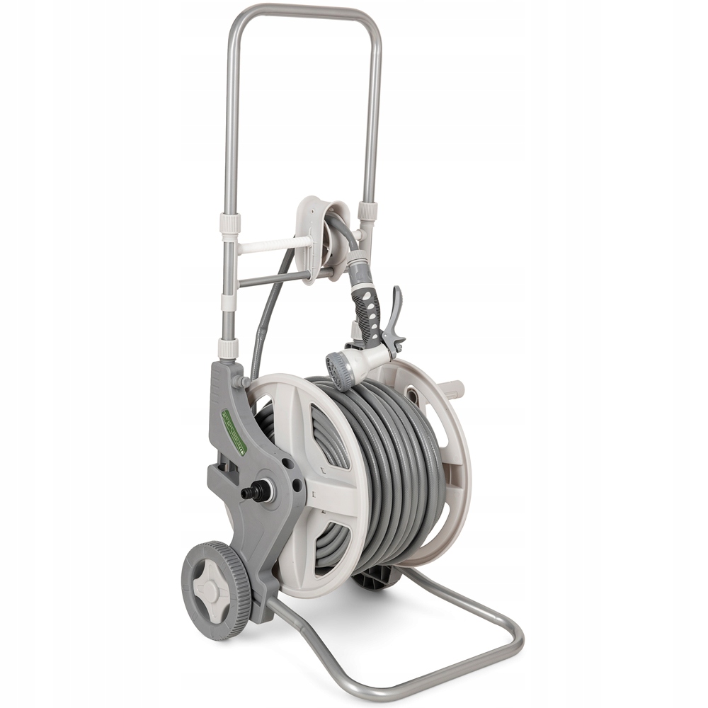 Шланг добавляется в водную связь с тележкой. Основной шланг уже прикреплен к нему. На этом этапе просто подключите насадку или пистолет и начните поливать. В целом Child's Play и не требует большой работы . Важным преимуществом этой системы является то, что поток воды может быть в обоих направлениях