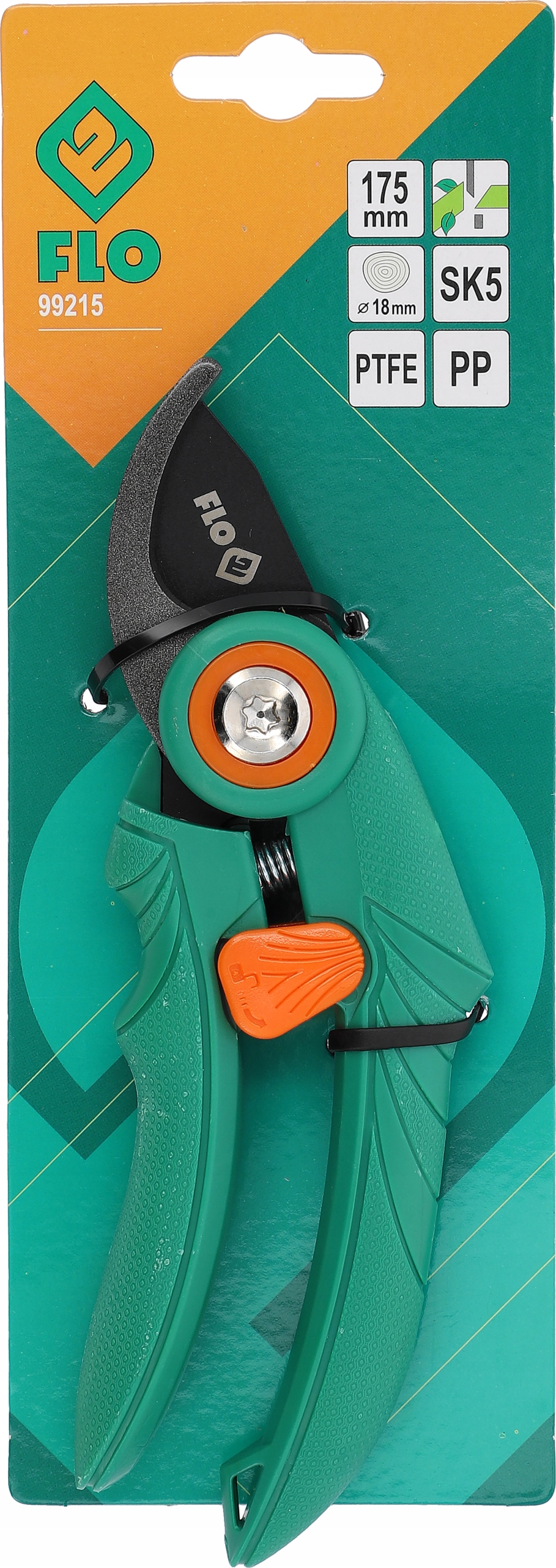 Рекомендуется для точной резки цветов, молодых побег и веточек диаметром до 18 мм. Клинок, изготовленный из высококачественной стали SK5, покрыт пластиковым покрытием PTFE, которое уменьшает трение, облегчает резку и защищает от коррозии. Механизм, блокирующий отверстие челюстей, позволяет безопасному хранению инструмента без риска случайной резки или повреждения лезвий.