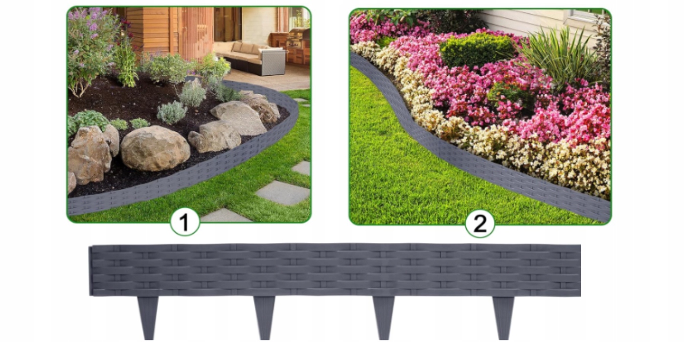 GARDEN PALISADE бордюр для садового газона 158смx18,5см СЕРЫЙ ПЛЕТЕННЫЙ