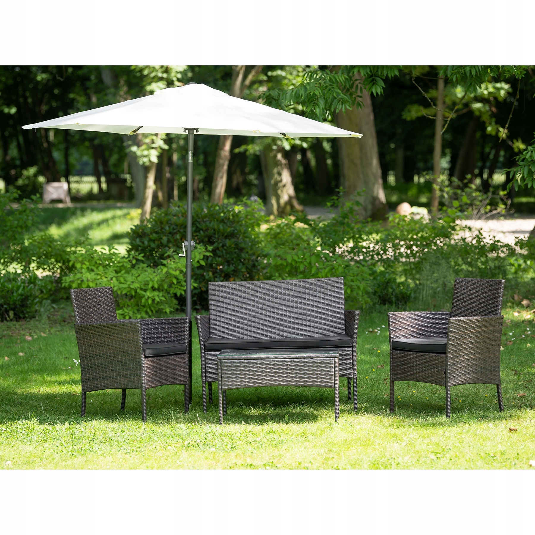 Большой диаметр зонтика позволяет затенять даже обширную многоэлементную мебель