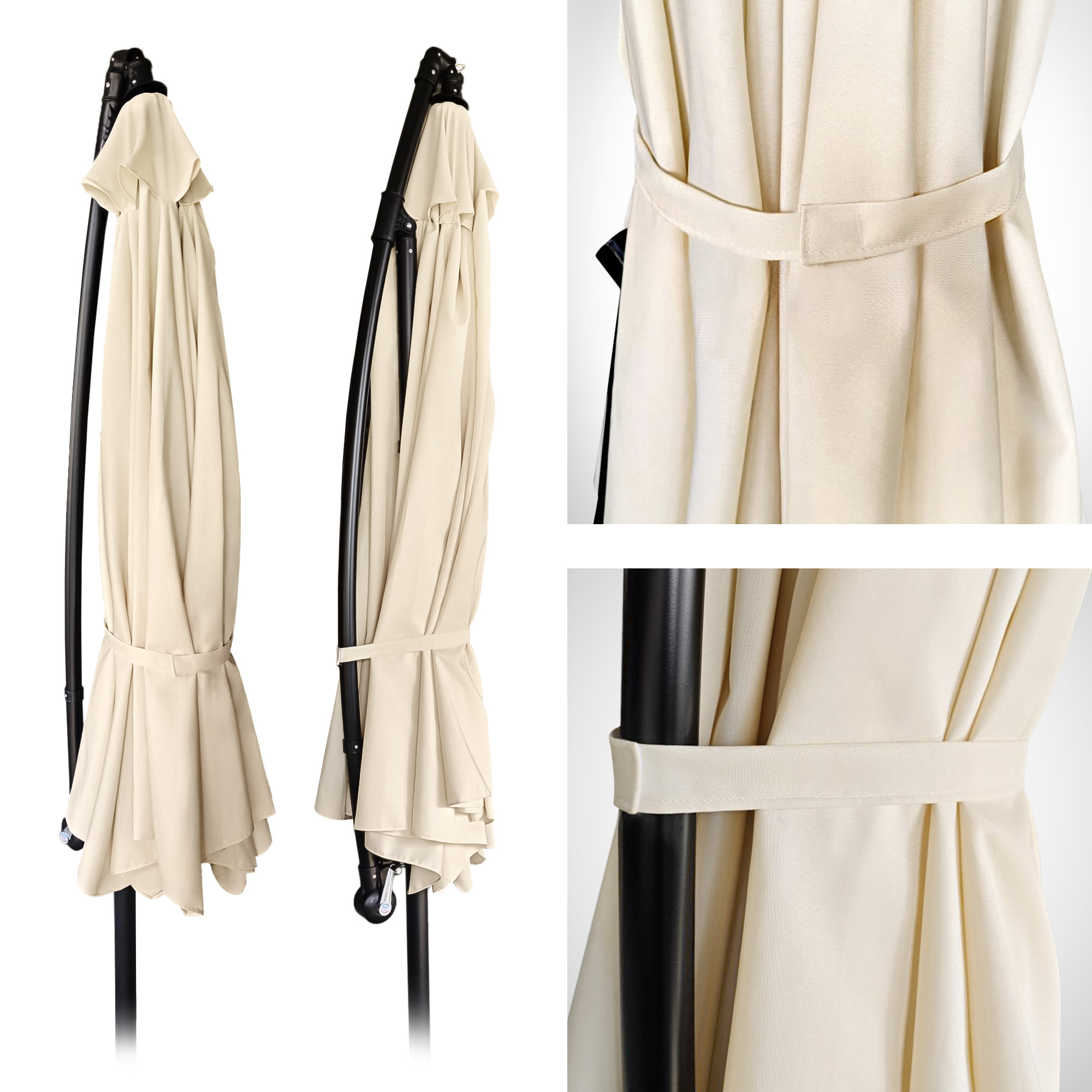 Важно: Чтобы избежать повреждения, всегда собирать и закрепить сильный ветер зонтика. Покрытие эффективно расширяет свою долговечность и защищает от повреждения.
