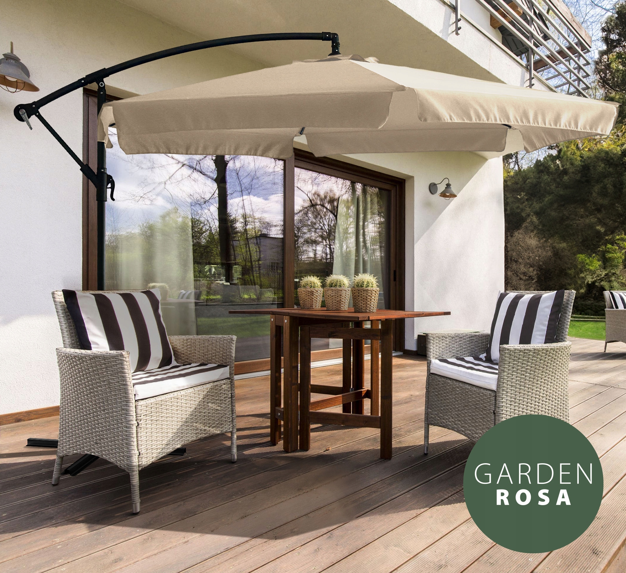 Садовый зонтик Garden Rosa b> - это комбинация функциональности, стиля и комфорта. Он обеспечивает эффективную защиту от солнца и дождя, будучи элегантным элементом вашего сада, террасы или балкона.