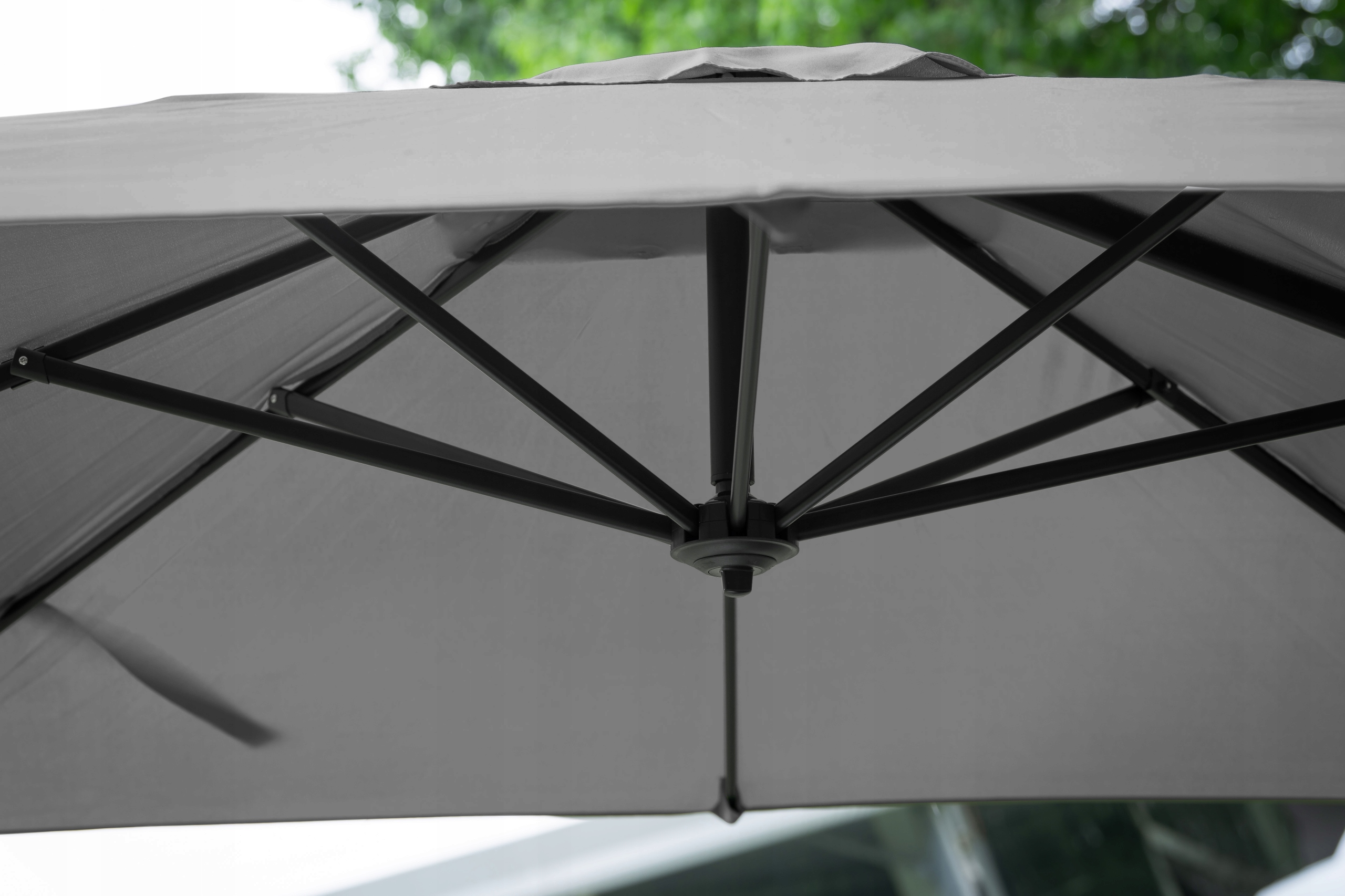 Платиновый садовый зонт оснащен направленной педалей, расположенной в основании, которая обеспечивает легкий и точный контроль вращения на 360 °.