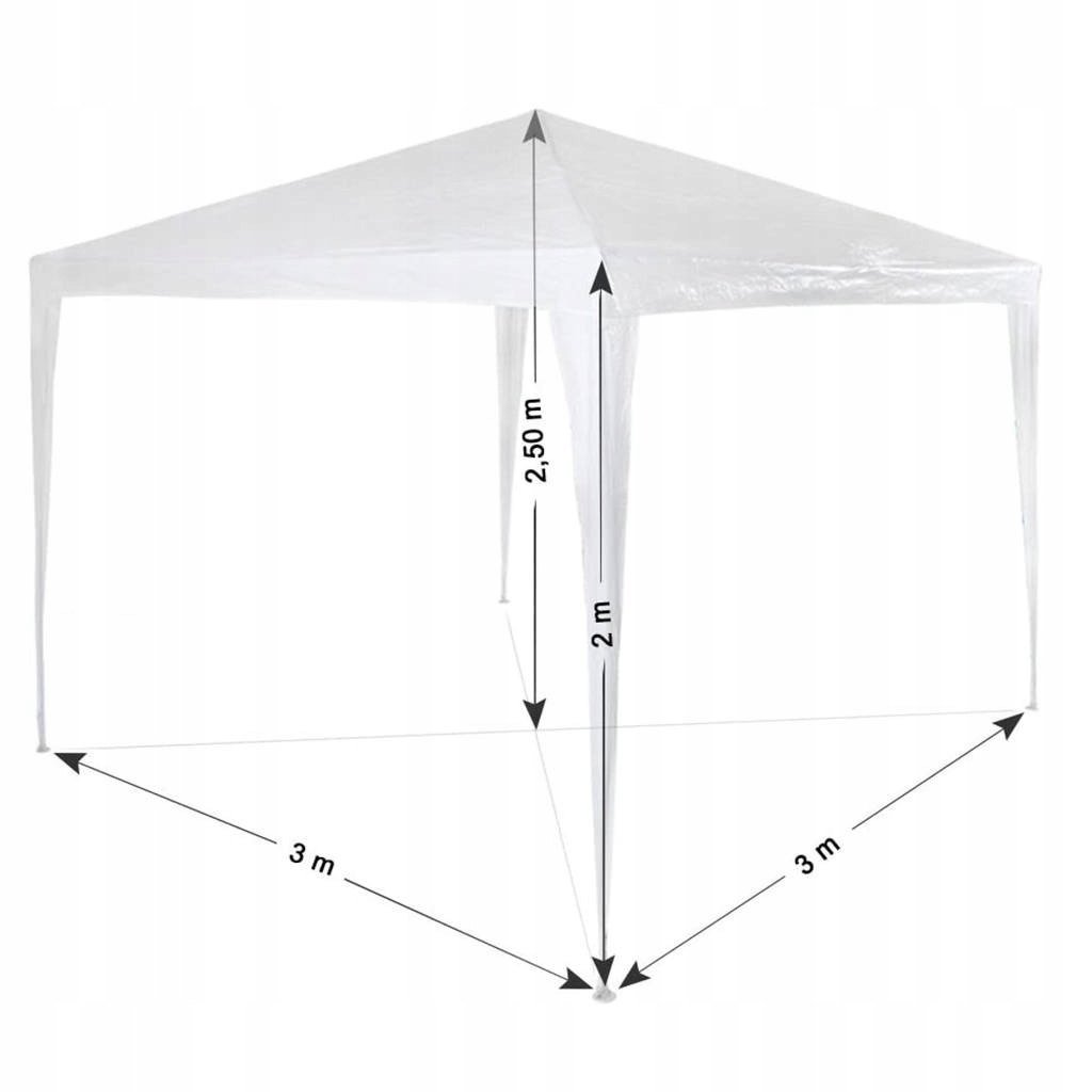 Садовый павильон - 3х3м (белый) Коммерческий палаток защищает от чрезмерного солнца и умеренного дождя. Чрезвычайно просто и быстро в сборке . Сделано из сильного, устойчивого дождя материала. Павильон идеально подходит для садовых мероприятий . Также отлично, как коммерческая палатка . Комплекс занимает мало места. Очень короткое время складывания поможет вам быстро настроить или собрать павильон. Необычный материал PE с весом 110 г/м2 (самый толстый на рынке) . Дополнительное преимущество нашего павильона был протестирован на протяжении многих лет строительство . Металлические трубки Порошковая окрашенная в белый цвет. Все элементы, необходимые для сборки (фитинги, трубки, ссылки, сельдь и т. Д.).
