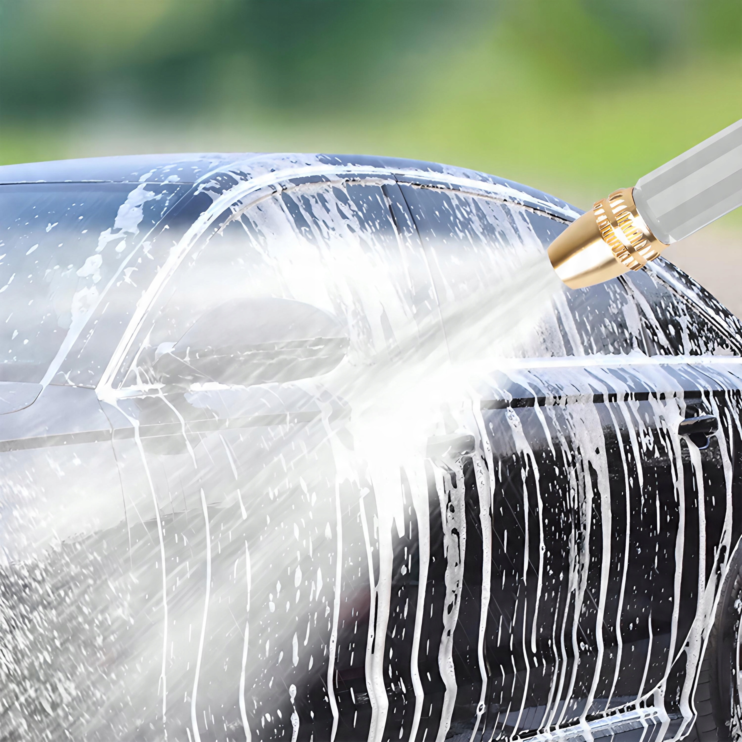 Распылитель высокого давления оснащен эргономичной ручкой, которая удобно лежит в руке и не скользит во время использования. Благодаря удобной форме им легко и комфортно пользоваться даже в течение длительного времени. Металлическая насадка создает струю воды под высоким давлением, которая идеально подходит для удаления грязи с вашего автомобиля.