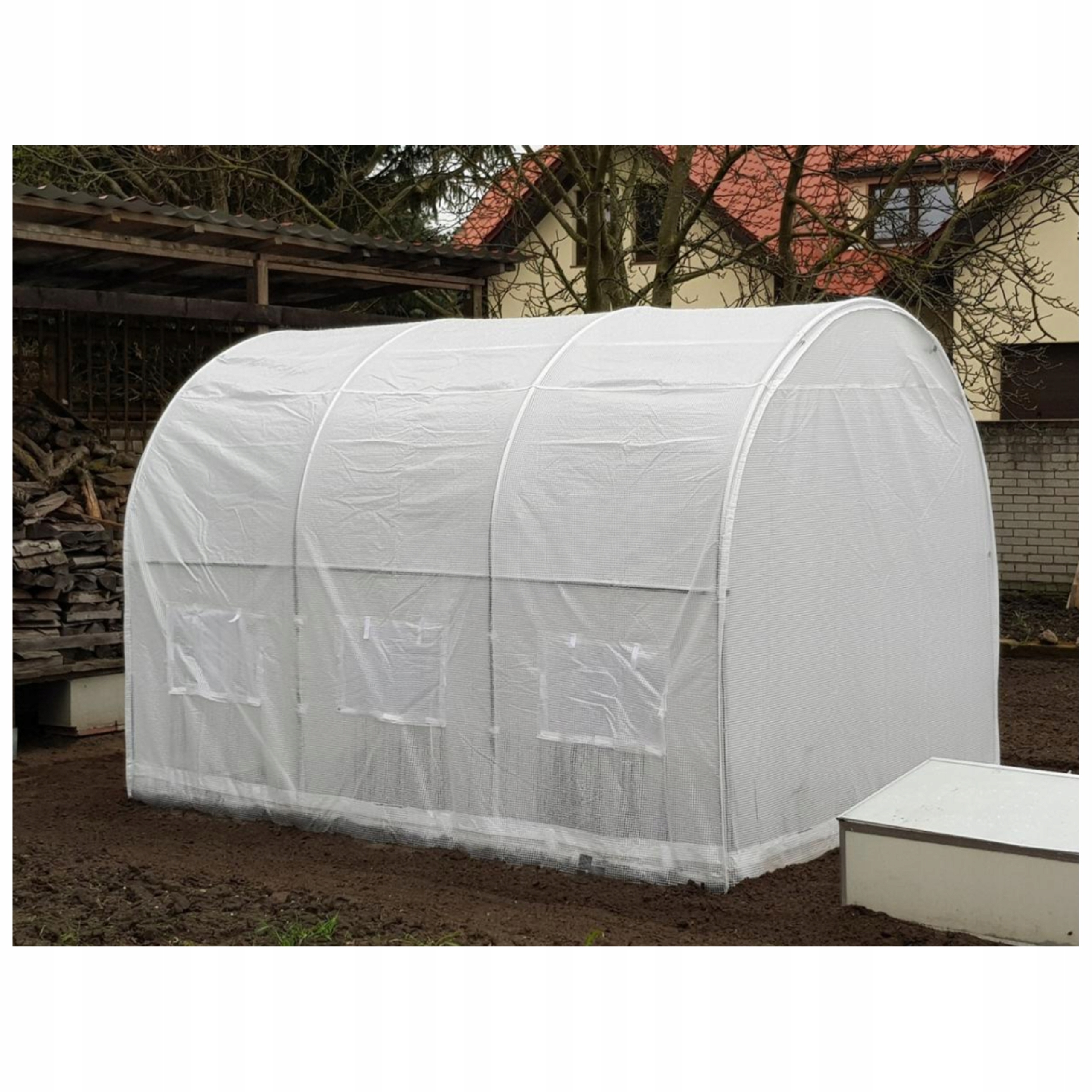Строительство применяется Сертифицированная садовая фольга с весом 140 г/м2 с фильтром UV5 - более высокий уровень защиты от ультрафиолета влияет на более длительный срок фольги . Сама пленка прозрачна, и ее, казалось бы, белый цвет является эффектом укрепления структуры белой полипропиленовой сеткой с сеткой 10x10 мм, которая была встроена в структуру. это обеспечивает более высокую устойчивость к фольге к механическому повреждению - например, он останавливает дальнейшее разрыв в случае повреждения.