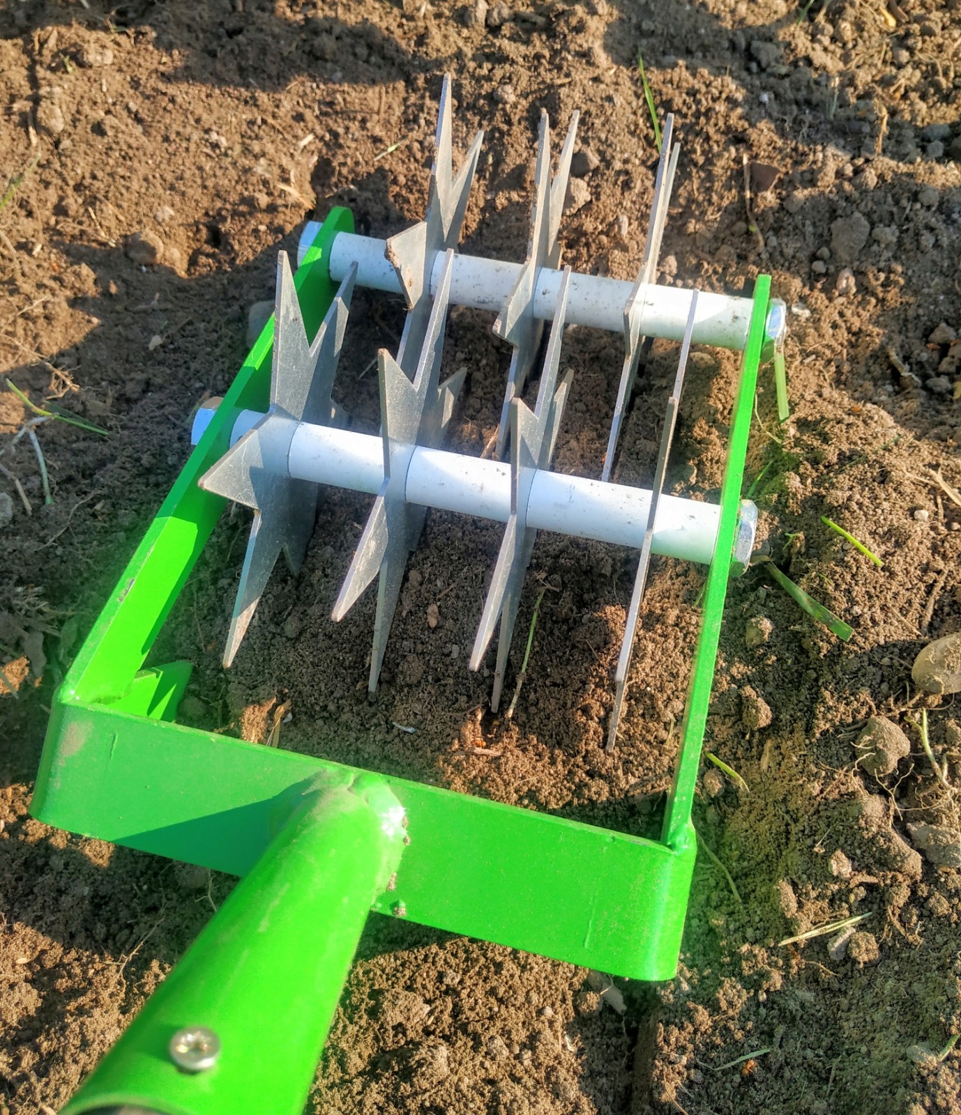 Оснащен 7 острыми стальными дисками и фрезой. Диски расположены в два ряда, вращаются независимо и предназначены для рыхления почвы. Нож используется для обрезки корней сорняков.