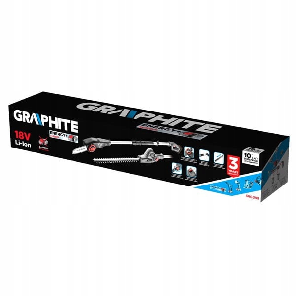 Многозадачное устройство 2-в-1 от GRAPHITE, незаменимое при уходе за зелеными насаждениями. Бензопила и кусторезотносятся к серии Energy+; современные электроинструменты, работающие от эффективных аккумуляторов большой емкости. Это устройство совместимо с литий-ионным аккумулятором Energy+ постоянного тока 18 В. В комплект также входит практичная стрела, благодаря которой можно дотянуться до труднодоступных, высоких растений.