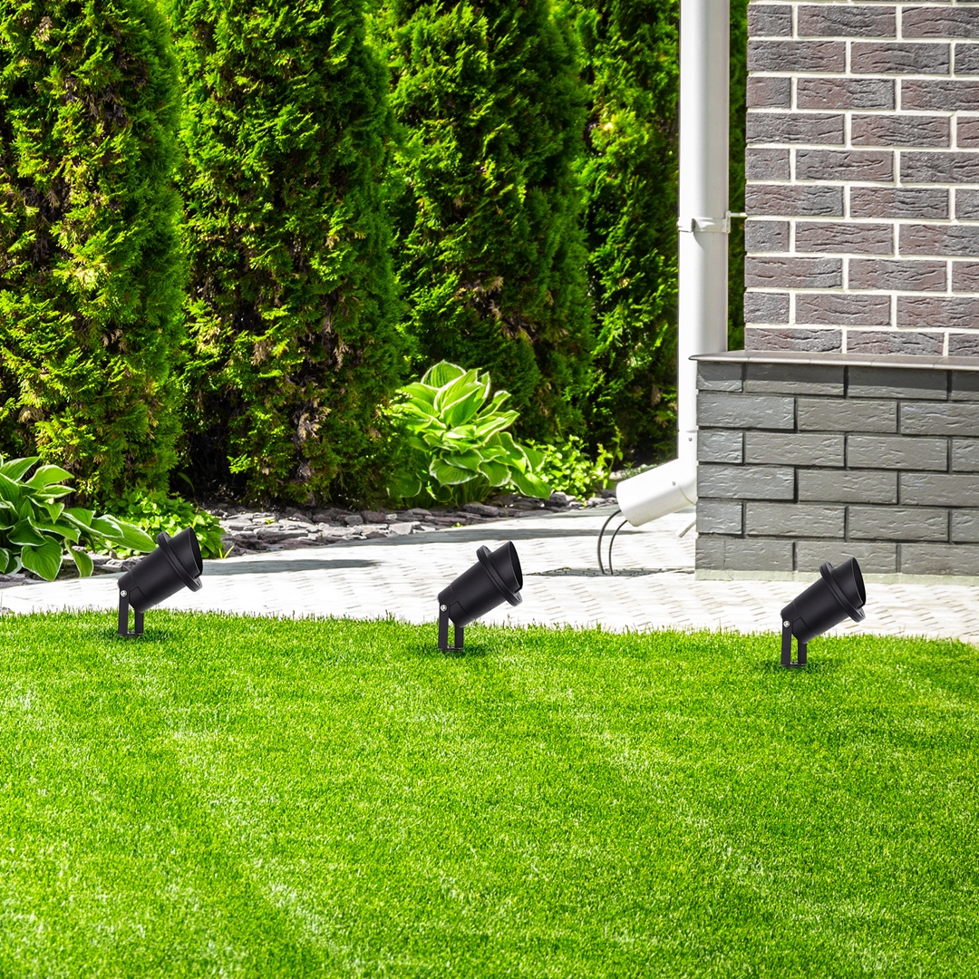 В садовом прожекторе есть место для лампы GU10, но источник света в комплект не входит.