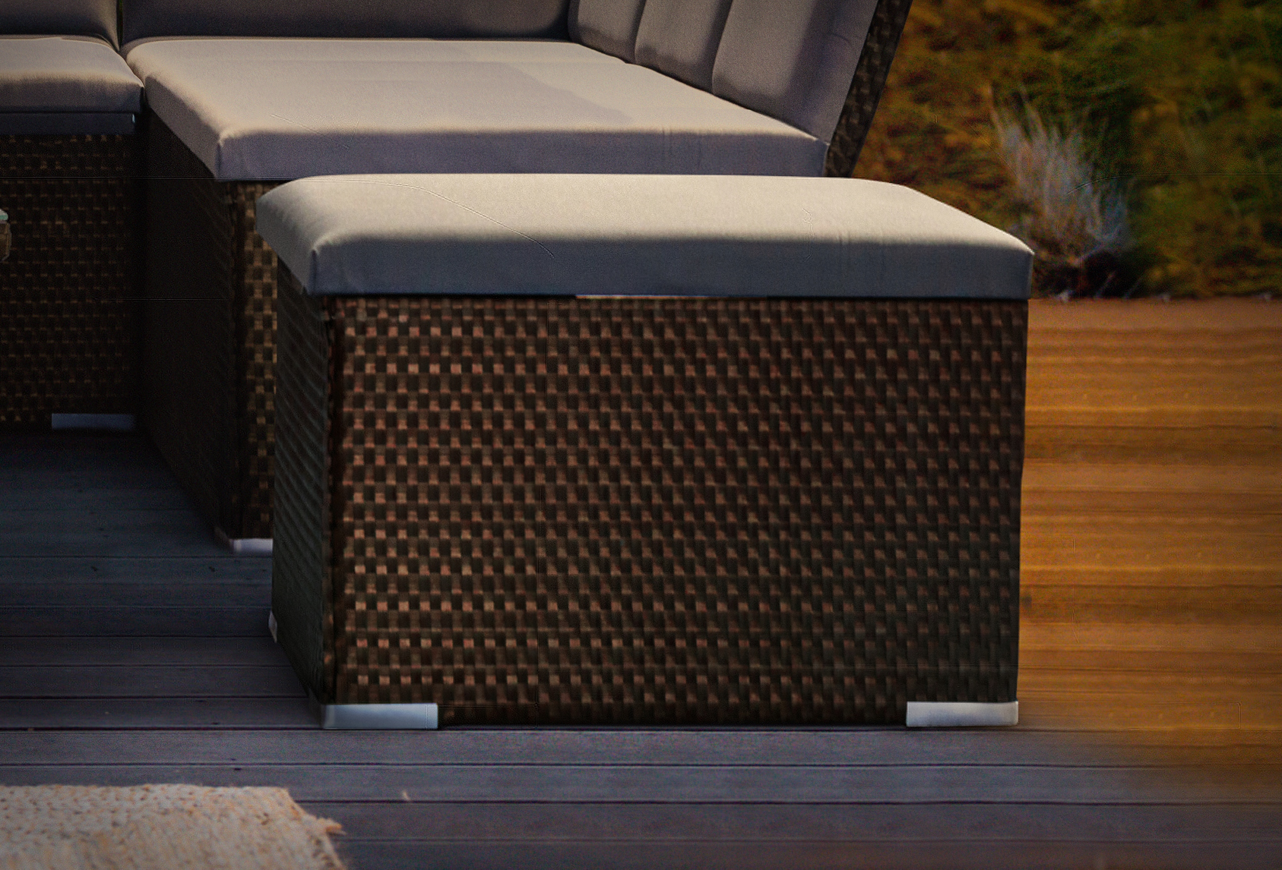 Technorattan Garden Pouf изготовлен из оцинкованного листа с ковром техноратана, отделанным с алюминием. Пуф адаптирован на улицу, идеально подходит для сада для балкона, террасы.