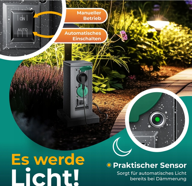 ✅ Кесер Садовый Спекнет Власть b> - корпус, устойчивый к ультрафиолетовым излучениям и погодным условиям, доля в земле для идеального использования, два мода, душевые датчики, 4 сокета с самостоятельными, флюп, флюп, флюп, флюп, флюп, флюп, флюп, флапа, флюпа Гибкая установка благодаря 3-метровому кабелю
