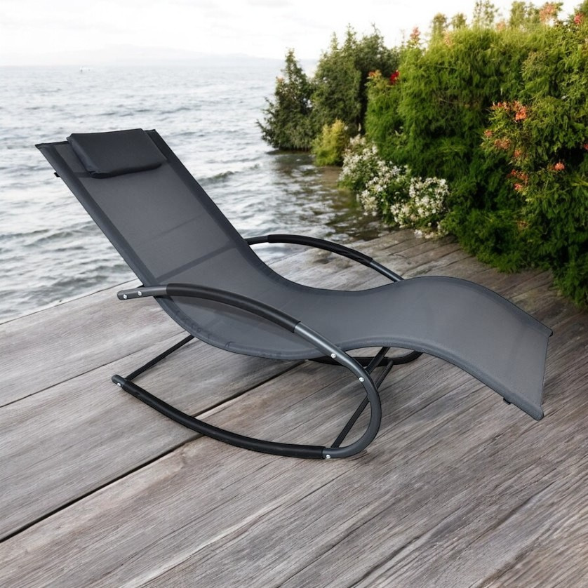 Садовый лаунджер Textilene черный черный 150 кг света с подушкой