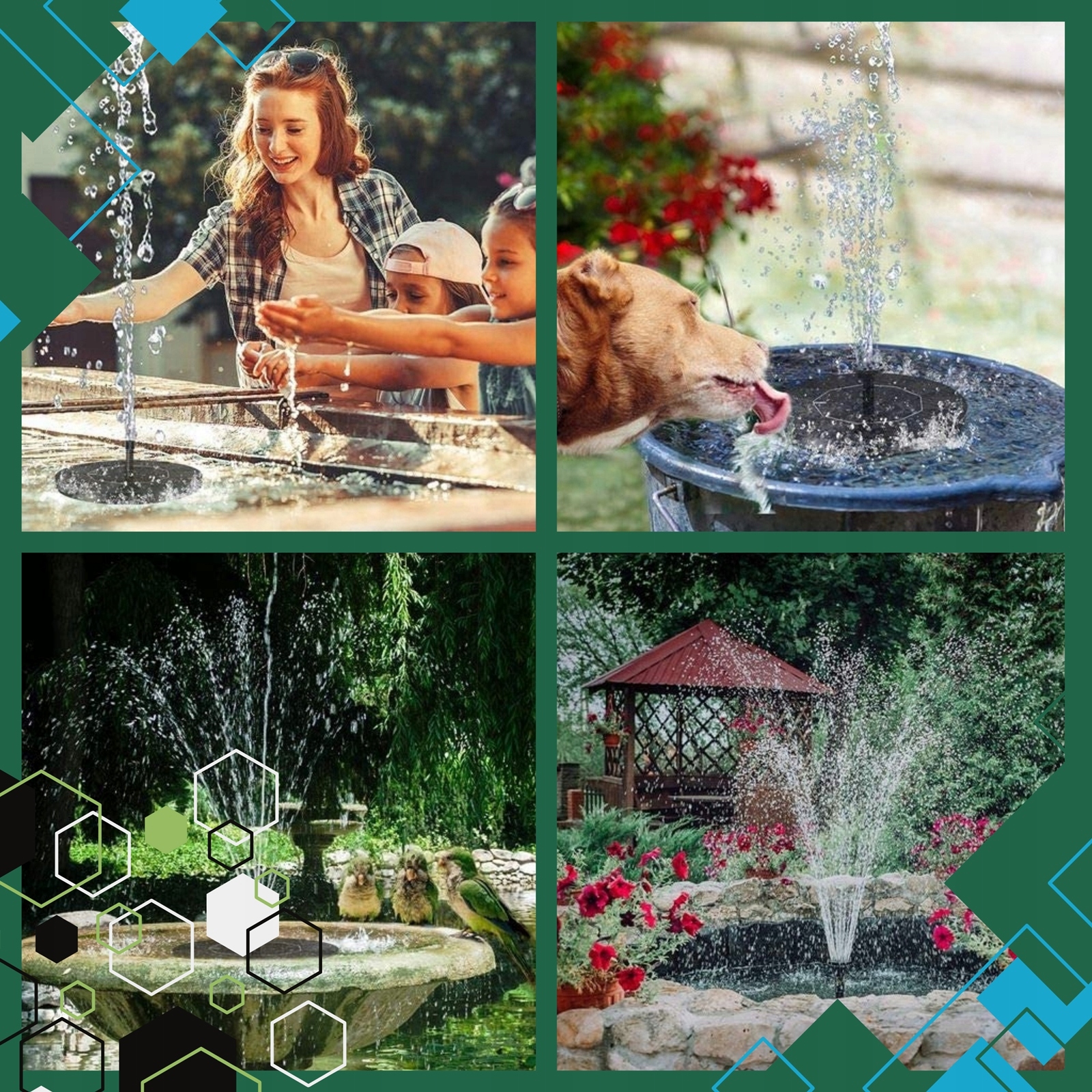 Фонтан оснащен солнечной панелью, которая заряжается во время воздействия солнца - не требует технического обслуживания мощности сети -free