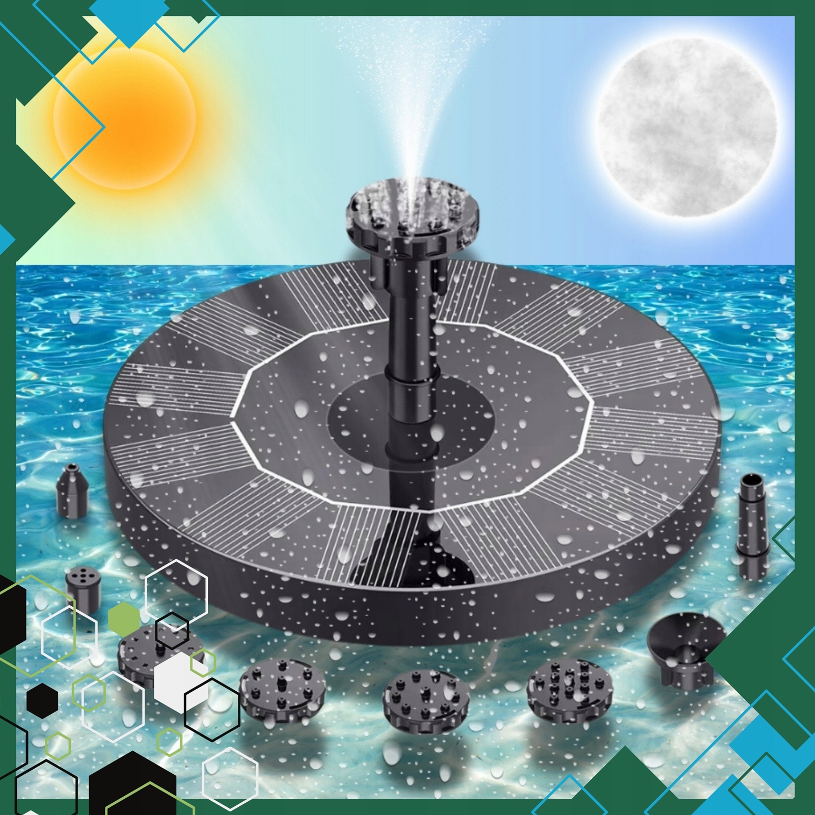Просто положите устройство на воду и предоставьте ему доступ к солнцу. Фонтан начнет работать автоматически - без настройки и инструментов.