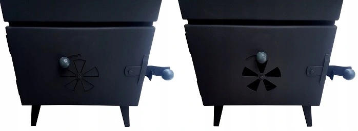 Коптильня оснащена регуляторами подачи/затухания воздуха. Каждый регулятор имеет поворотную ручку, позволяющую правильно установить уровень тяги.