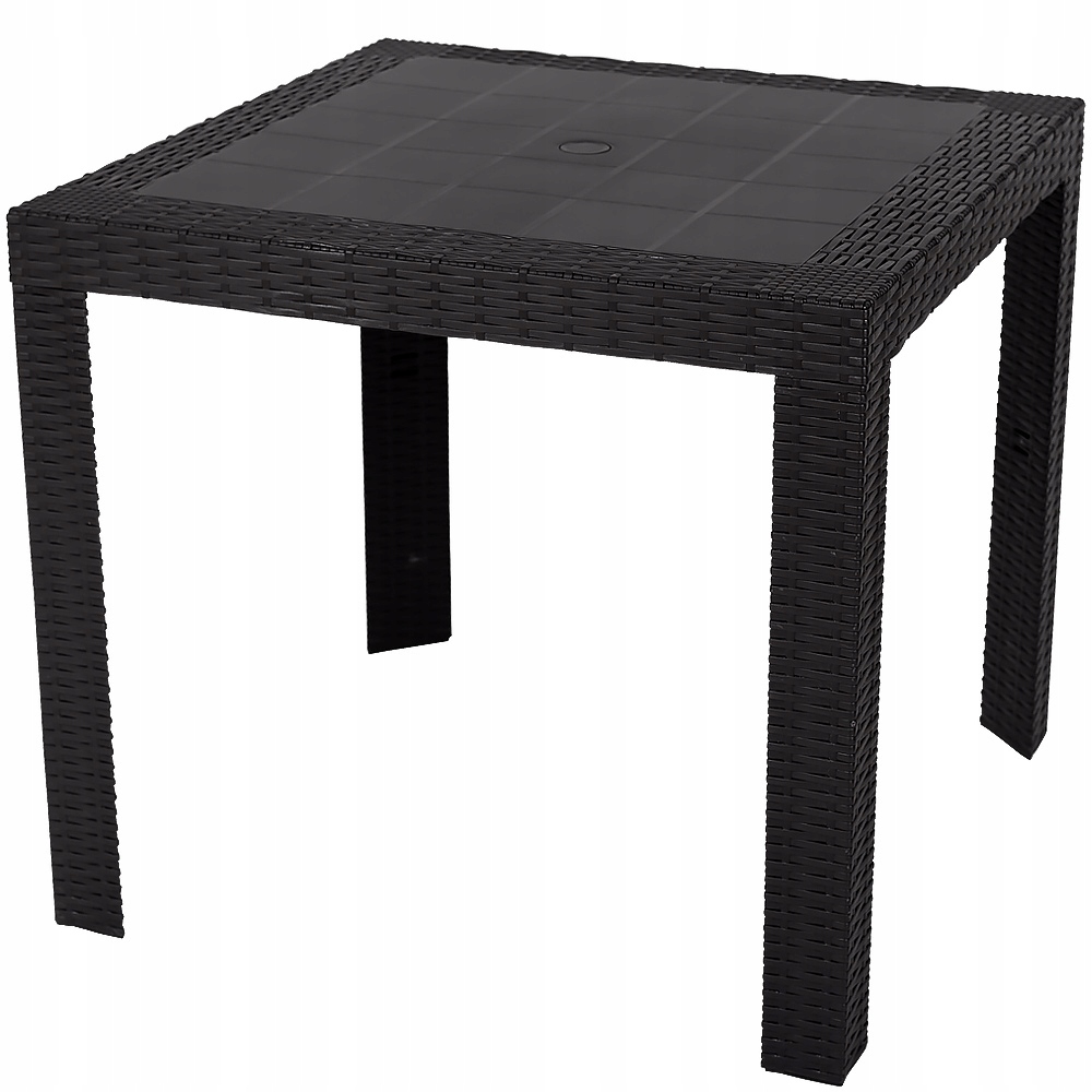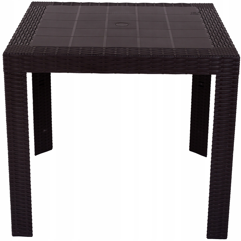 Столешница изготовлена из литого полипропилена в стиле техноротанга. В середине столешницы имеется практичное и полезное отверстие для садового зонта.