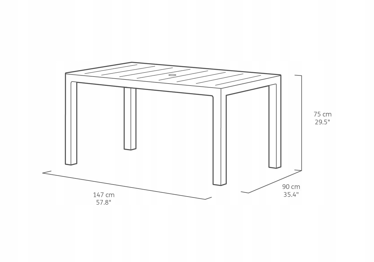 Удобный и широкий топ предоставит много места во время встреч в большей группе. Удаленная таблица занимает мало места. Устойчив к вредным погодным условиям и ультрафиолетовым излучениям. У этого есть дыра для зонта. Не требует технического обслуживания!