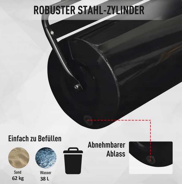 Эффективным способом сгладить поверхность газона после посева семян и не только использование этого садового ролика. Изготовленная из высококачественной стали с покрытием, она не ржавела за эти годы с длительным использованием. Барабан цилиндров имеет емкость 38 л, т. Е. Вы можете отрегулировать прочность его давления (до 62 кг с заполнением песка). Это также означает, что его можно легко перемещать, когда он пуст. Ручка в форме ручной работы обеспечивает комфорт при толчке и тяге и делает сглаживание газона, становясь настоящим удовольствием