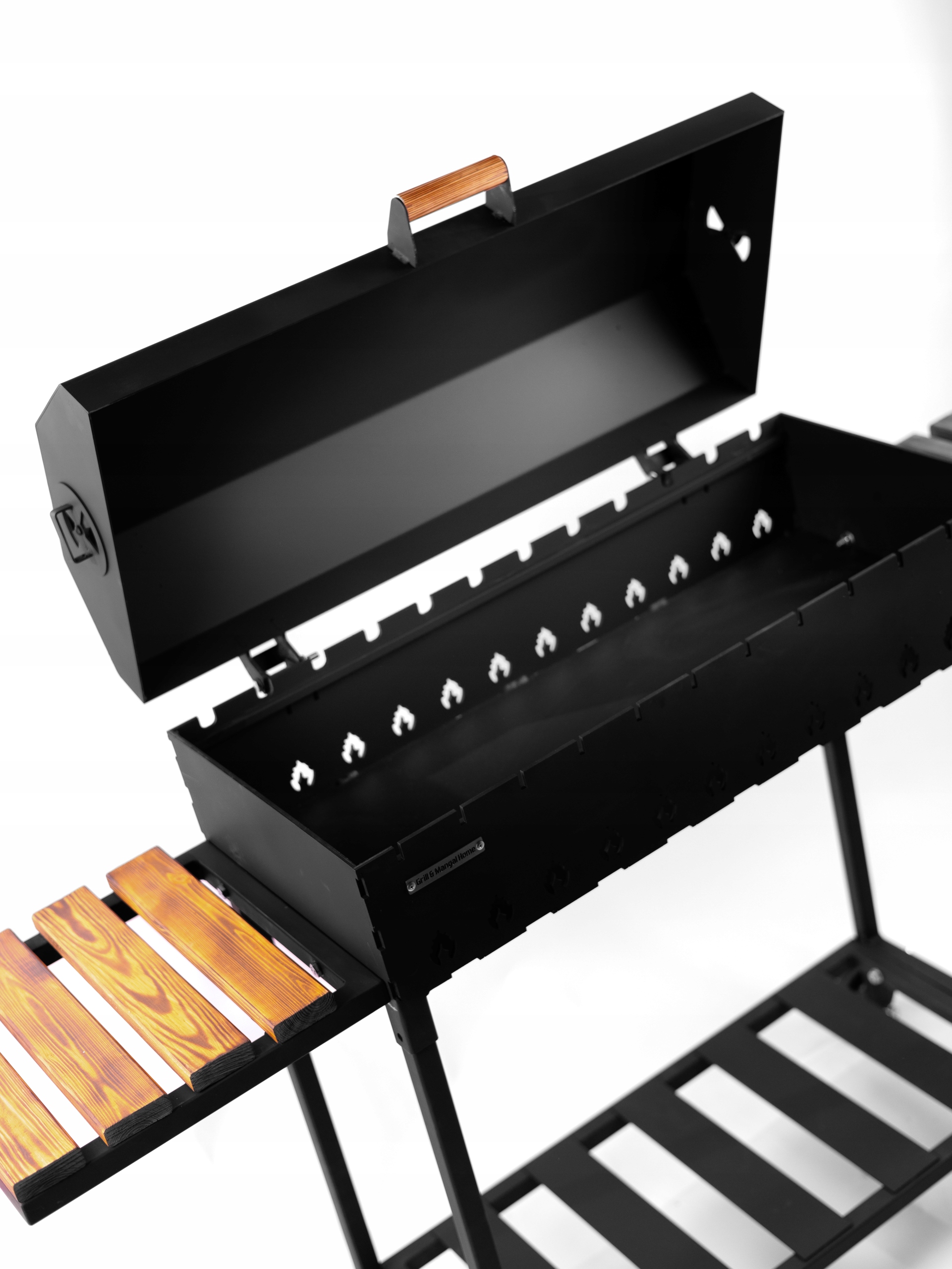 Наш гриль изготовлен из высококачественной стали толщиной 5 мм, что гарантирует его долговечность и устойчивость к высоким температурам. Практическая система вентиляции позволяет точно регулировать температуру, а большая рабочая поверхность позволяет готовить различные блюда одновременно, что экономит ваше время.