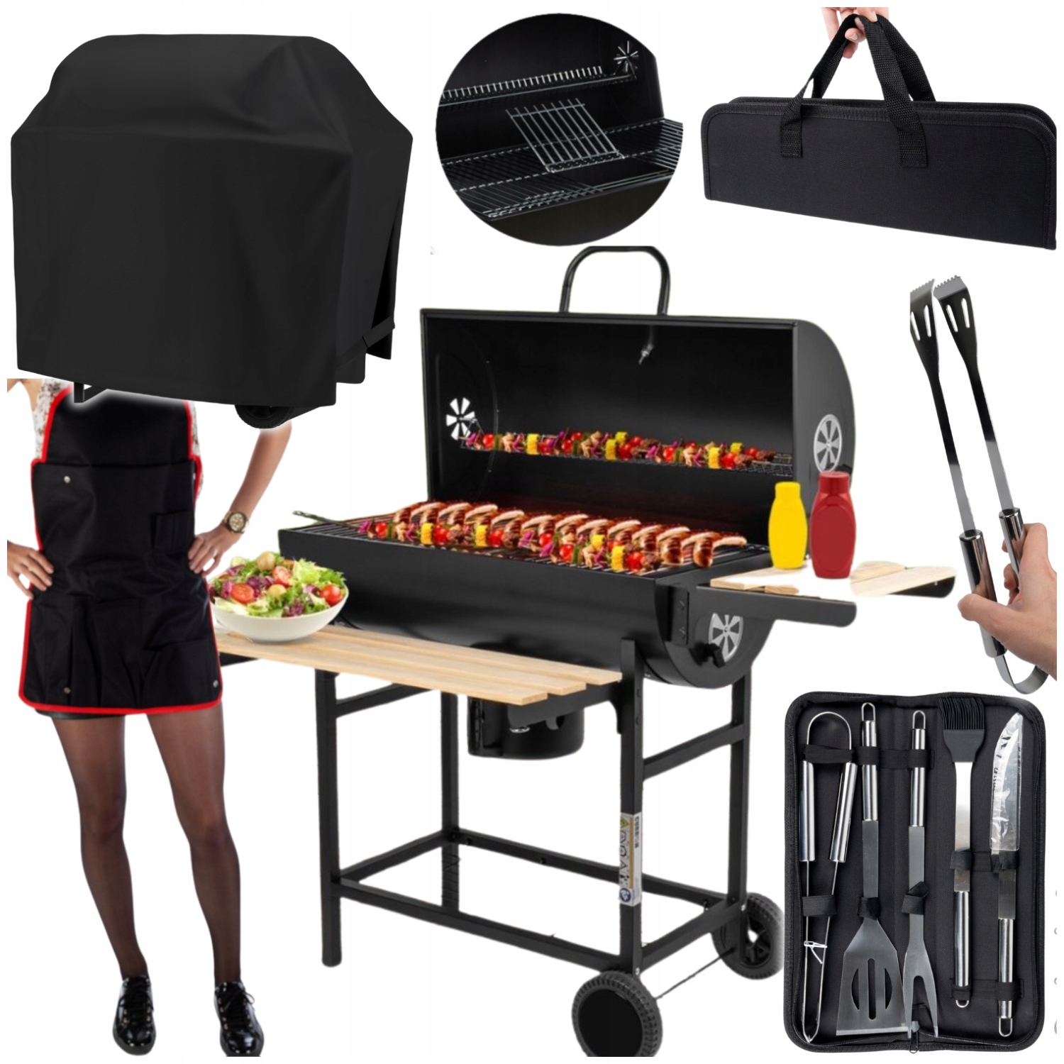 САДОВЫЙ УГОЛЬНЫЙ ГРИЛЬ БОЛЬШОЙ ГРИЛЬ + ФАРТУК + Посуда + КРЫШКА ДЛЯ ГРИЛЯ