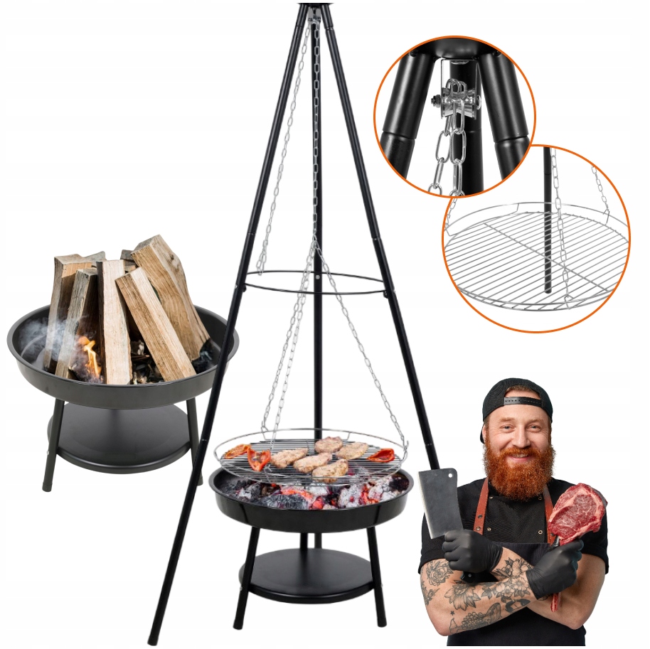 Вы мечтаете о гриле над огнем в классическом стиле? Этот гриль, висящий на штативе, с очагом, является идеальным сочетанием функциональности, безопасности и эстетики. Идеальный выбор для участка, для сада или для кемпинга - позволяет вам наслаждаться вкусом блюд на гриле без необходимости установить стационарный гриль.