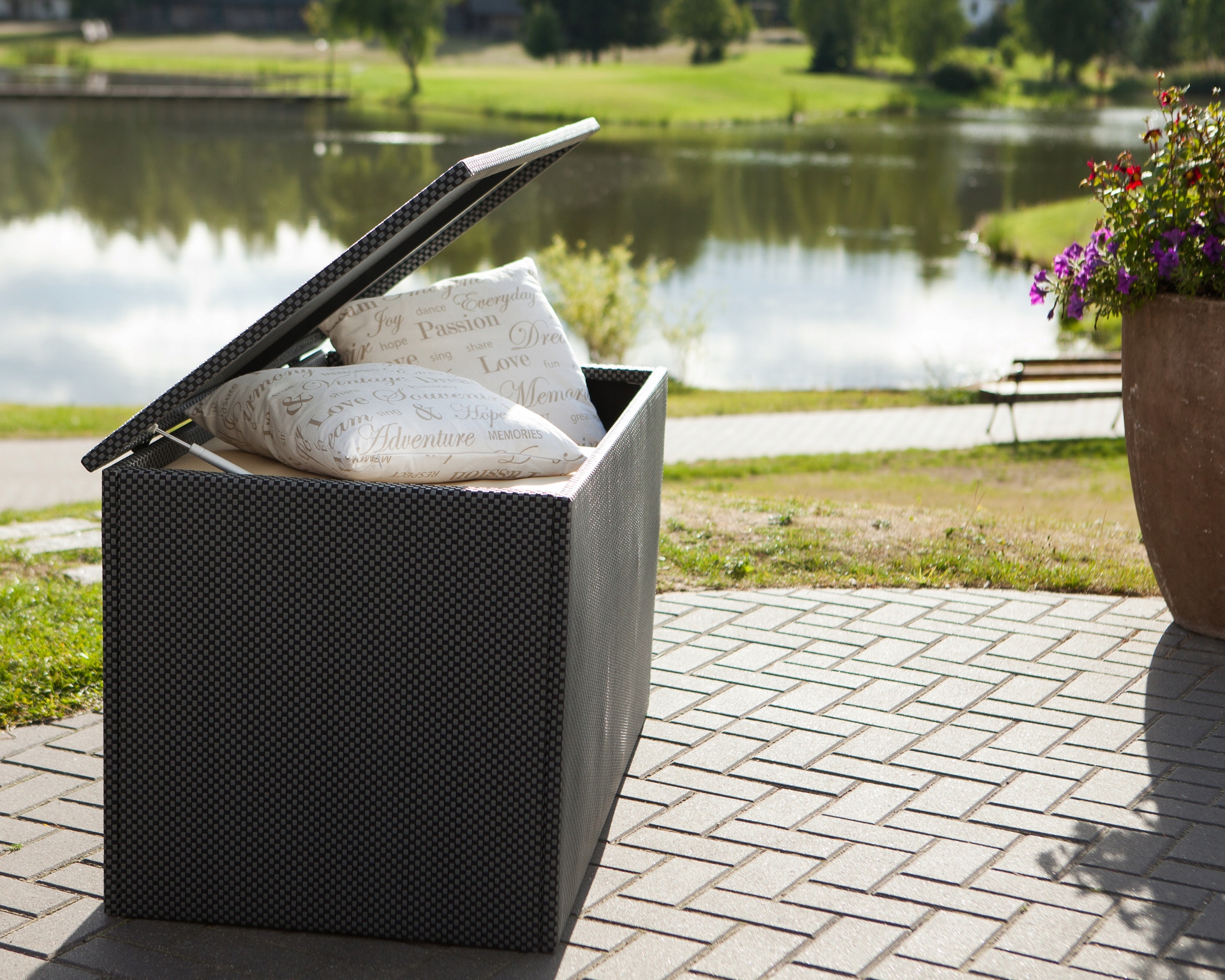 Изделие устойчиво к солнцу (УФ-излучению), морозу, снегу, дождю. Он прекрасно украсит ваш сад, дом или террасу. Назначение: для подушек садовой мебели, для инструментов...