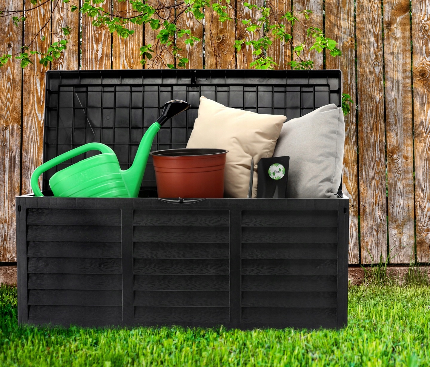 Наш ящик идеально подходит в саду для хранения различных предметов, в том числе инструментов. Также он будет использоваться на террасе для хранения дополнительного инвентаря для беседки (подушек, игрушек, принадлежностей для барбекю и т. д.).