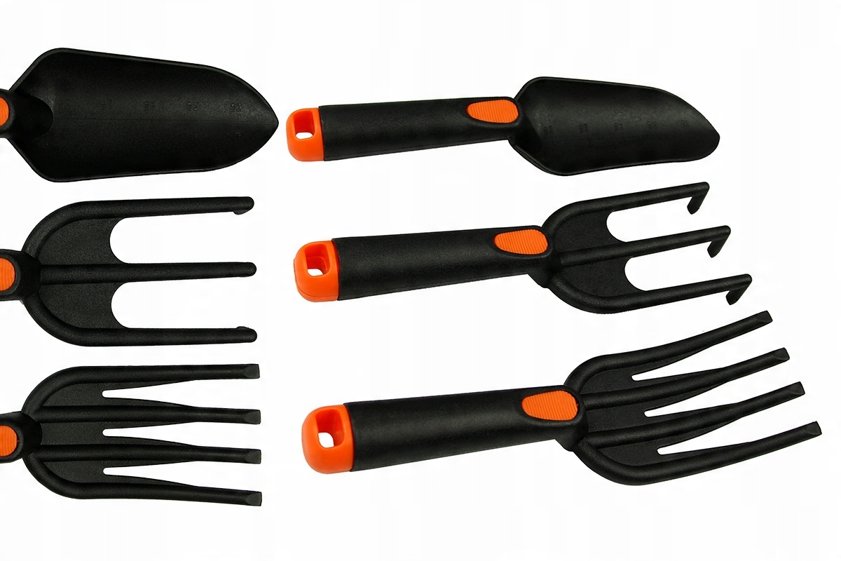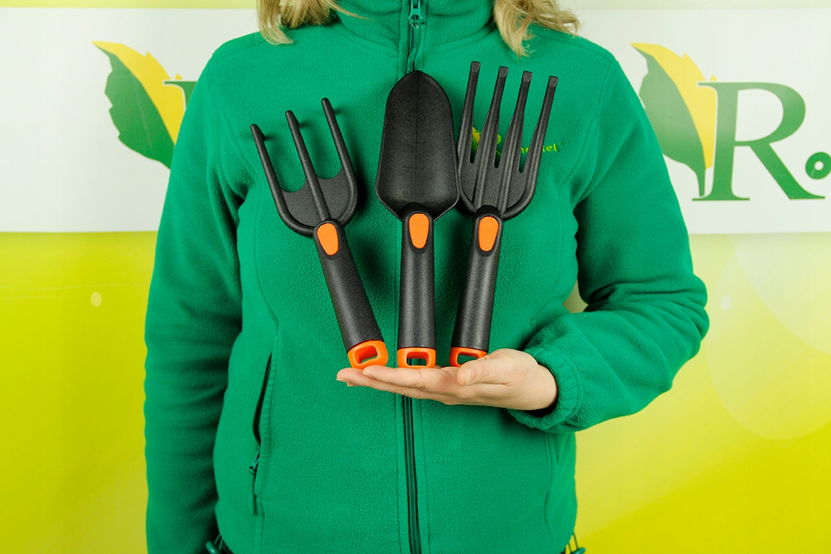 Набор садовых инструментов из 3 предметов: широкая лопата, вилка, садовые когти.