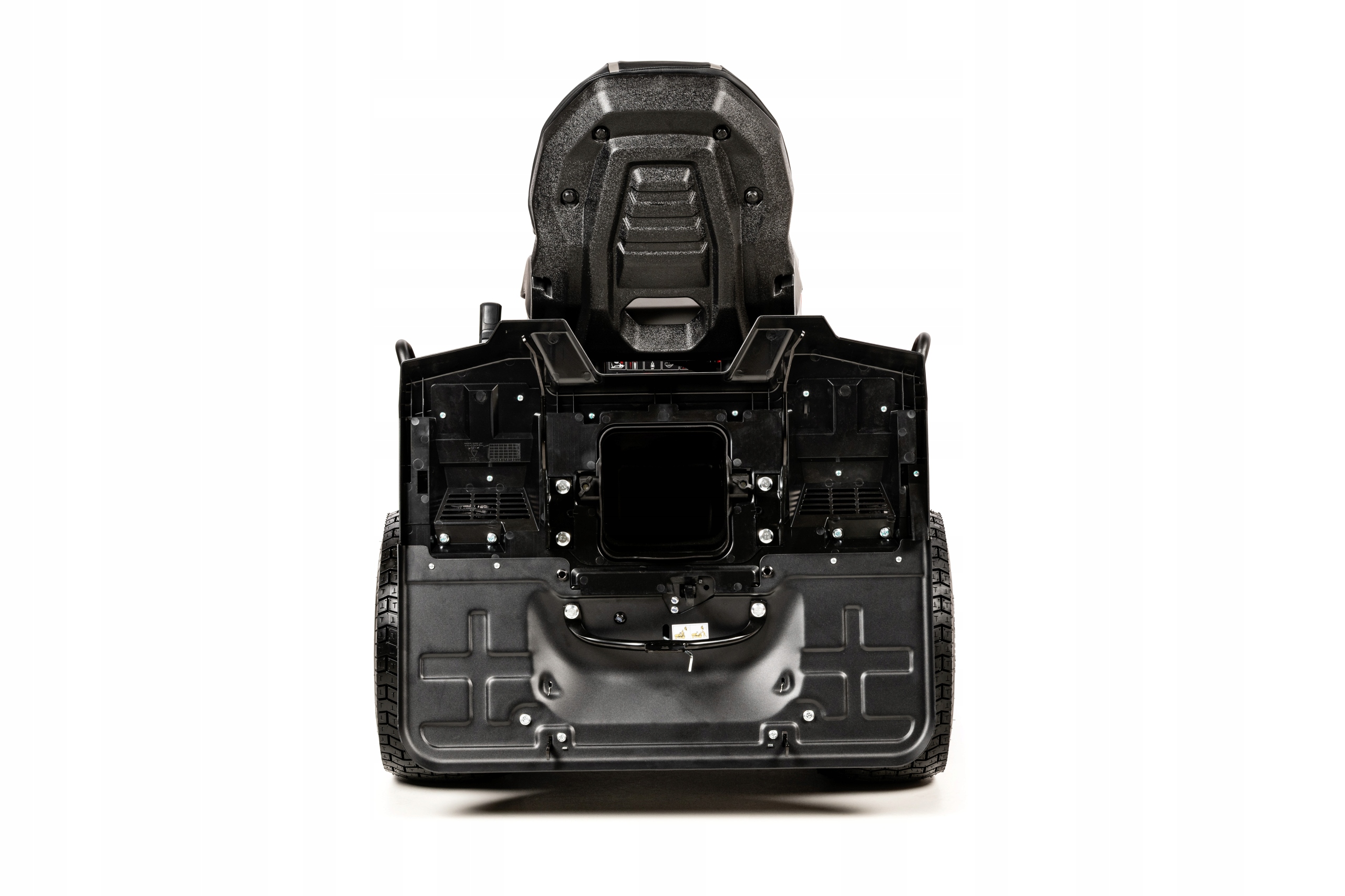 Сиденье ПРЕМИУМ, многофункциональный дисплей, датчик сумерек, светодиодная подсветка, функция кошения задним ходом, разъем для промывки режущей системы, усиленная рулевая система с двумя тягами, дополнительные ручки, прицепное устройство, датчик наполнения корзины, зарядное устройство, колпак для мульчирования, электромуфта ножа, передний бампер, колеса с повышенной тягой (15х7,00-8 передние; 18х10,00-9 сзади).