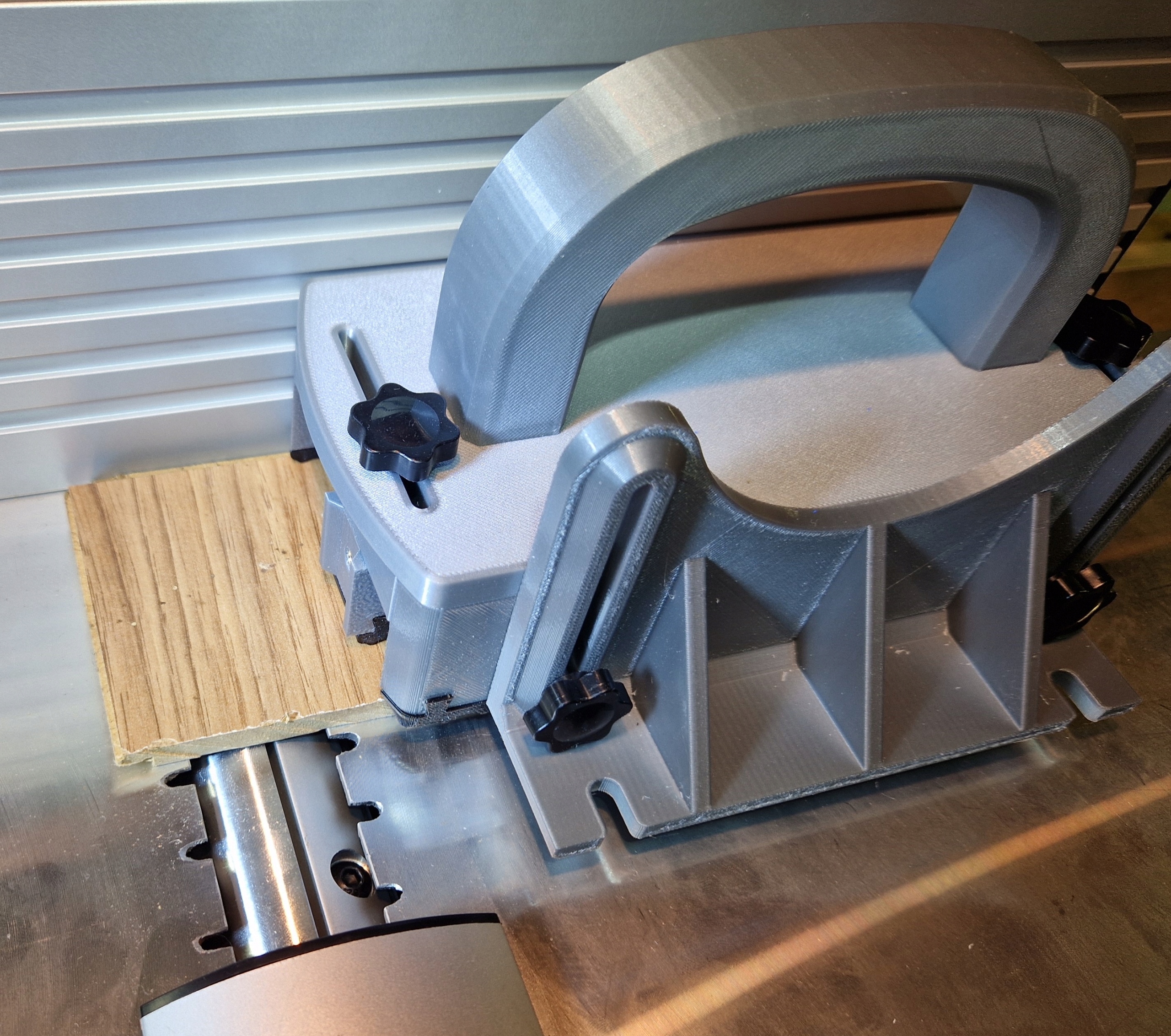 Регулируемая ручка предназначена для стабильного и безопасного крепления досок, полос и других элементов во время резки, фрезерования или шлифования. Конструкция обеспечивает точное позиционирование материала и минимизирует риск смещения обрабатываемого элемента.