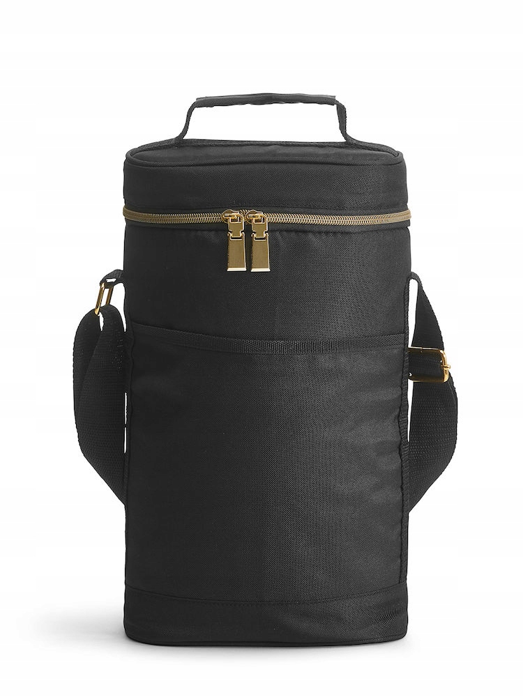 Уличный термосумка-холодильник для вина City на 2 бутылки объемом 1,5 л от Sagaform в черном цвете с золотой фурнитурой.